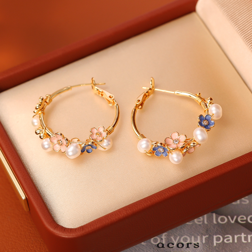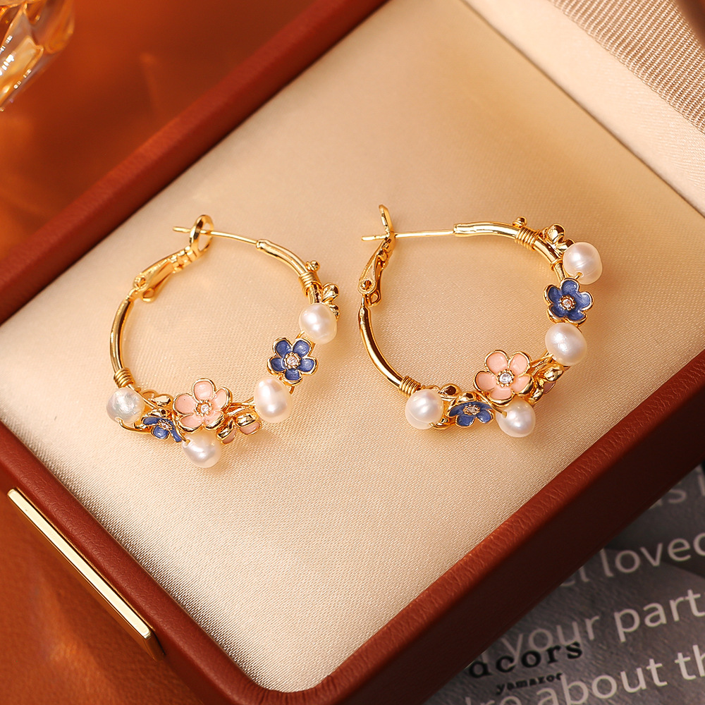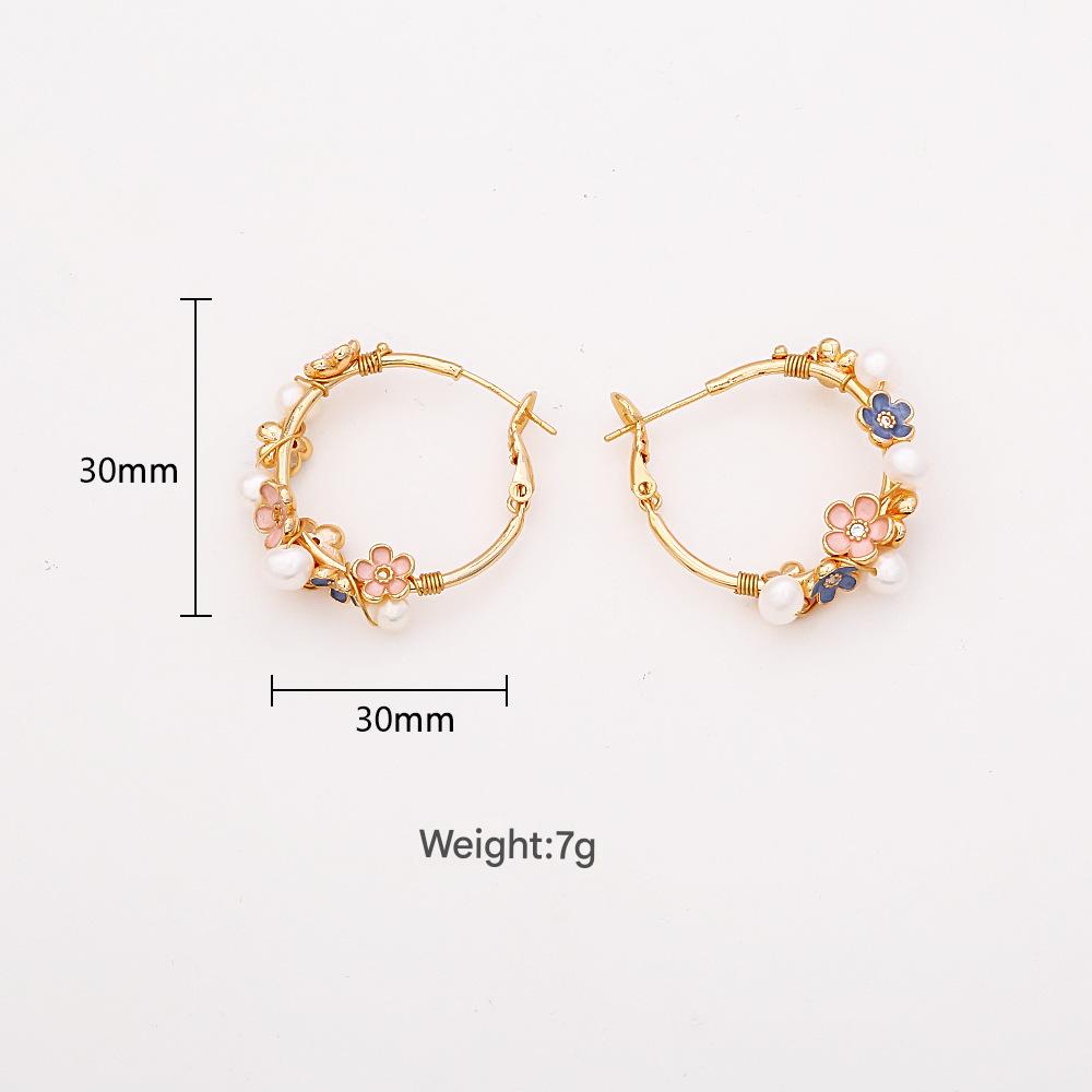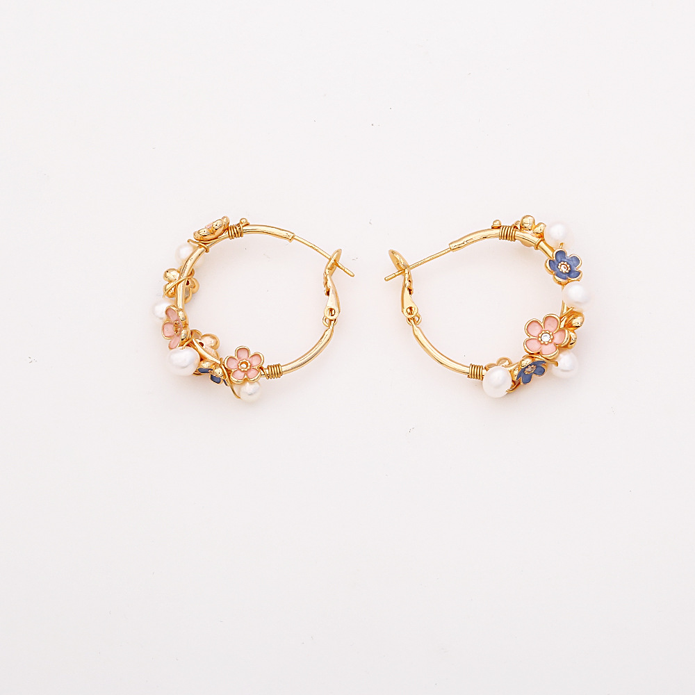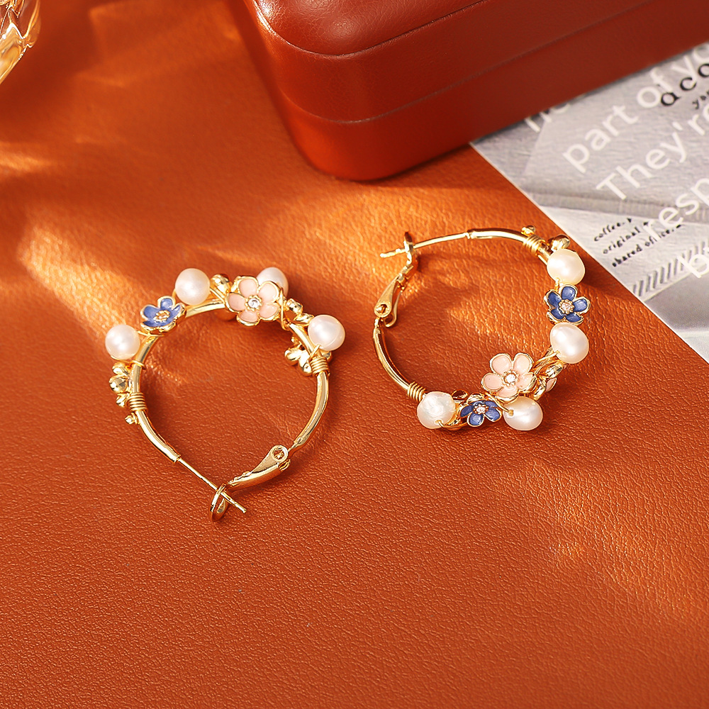 Boucles d'oreilles d'eau douce de Perle , laiton, avec perle d'eau douce cultivée, fleur, Plaqué d'or, bijoux de mode & pour femme & émail, Vendu par paire