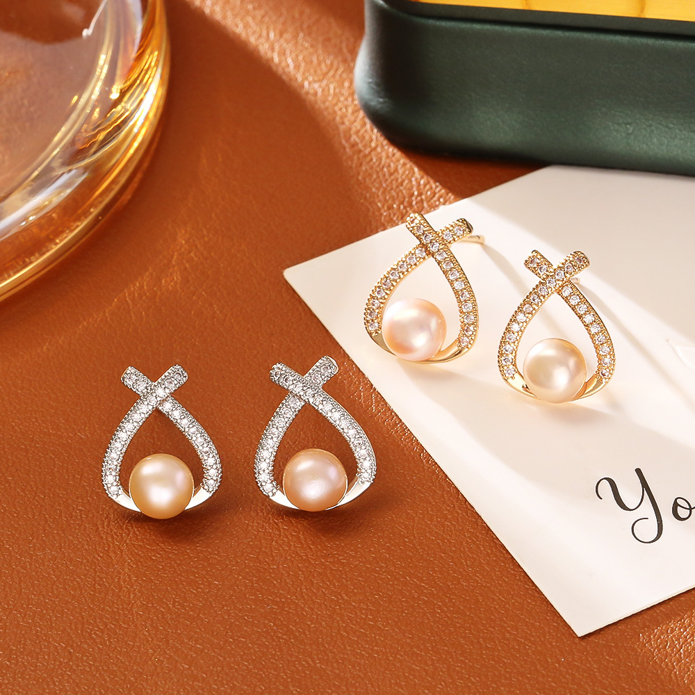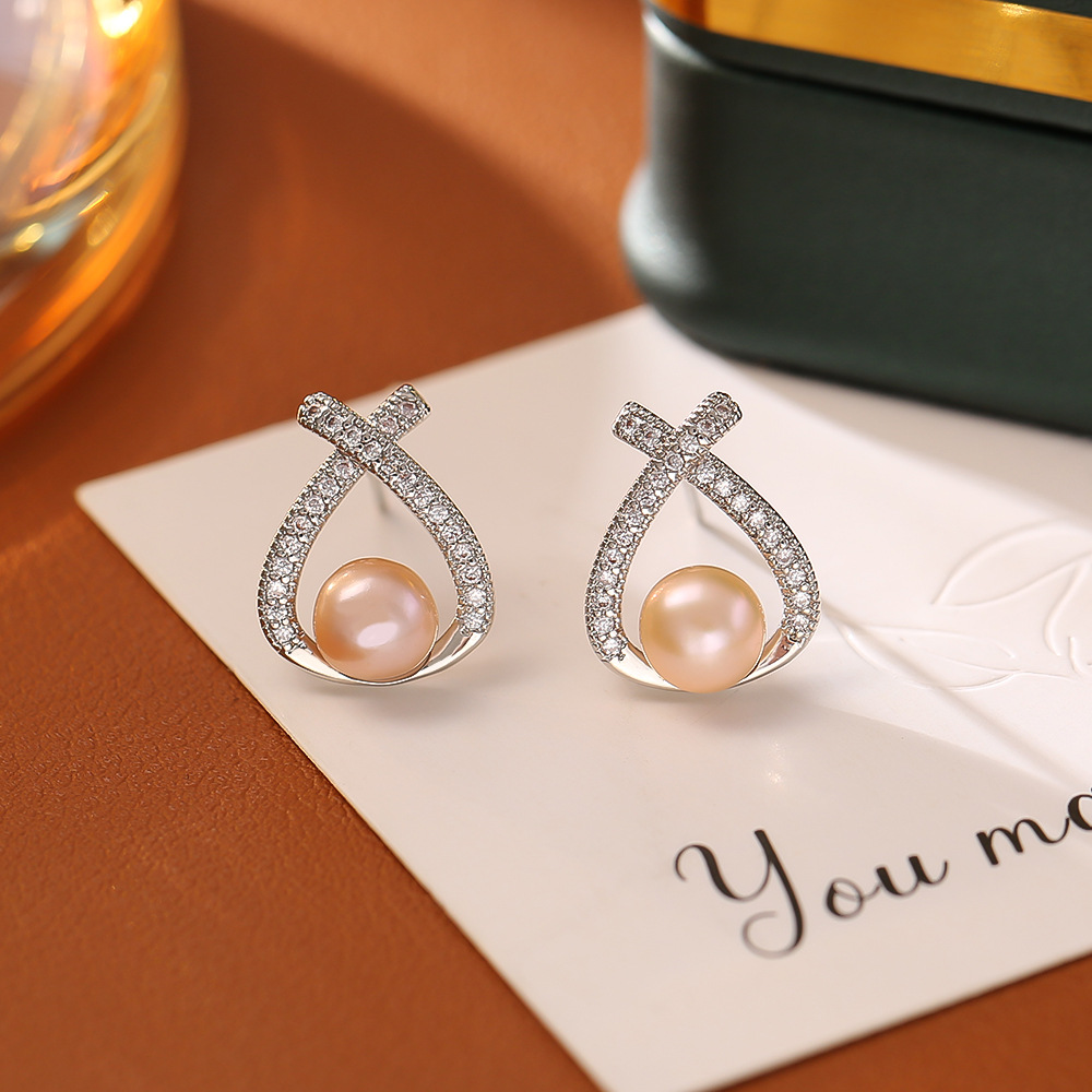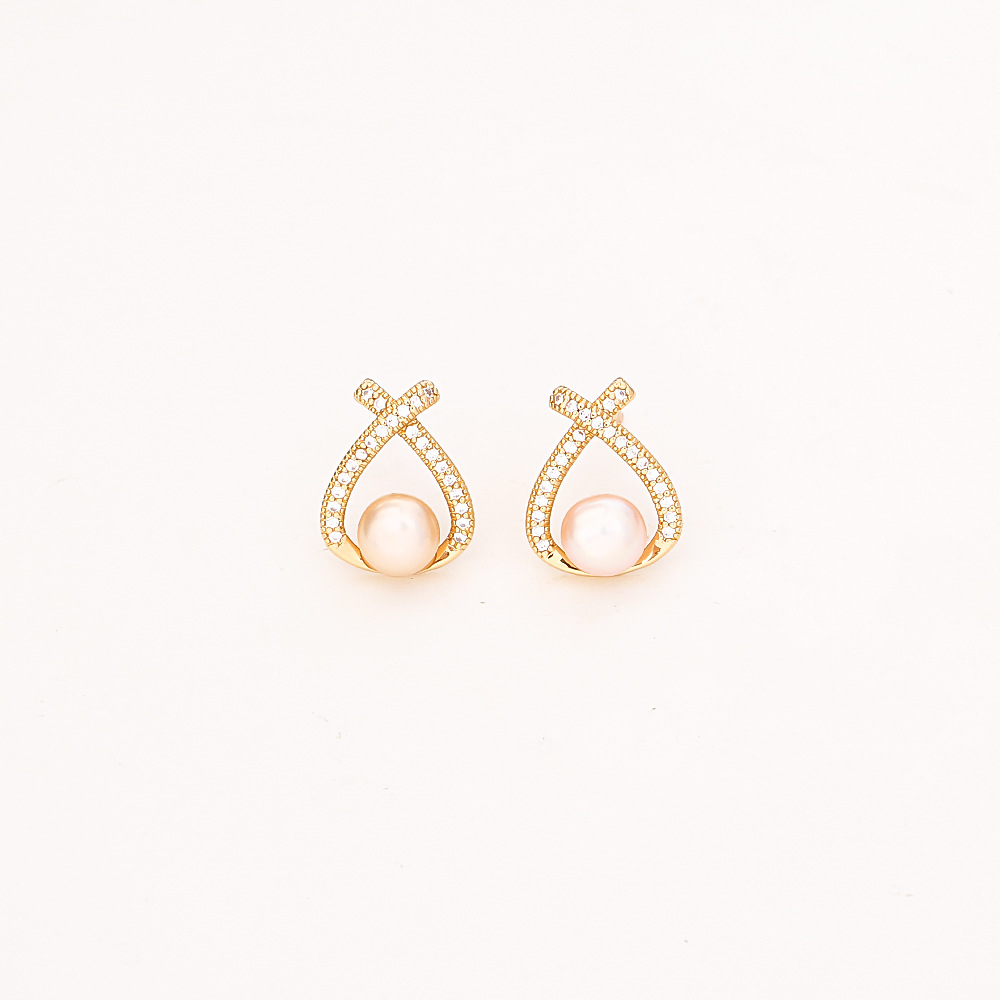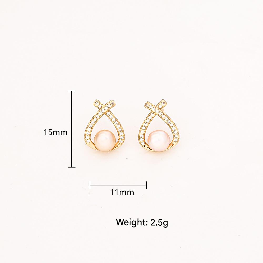 Boucles d'oreilles d'eau douce de Perle , laiton, avec perle d'eau douce cultivée, Placage, pavé de micro zircon & pour femme & creux, plus de couleurs à choisir, Vendu par paire