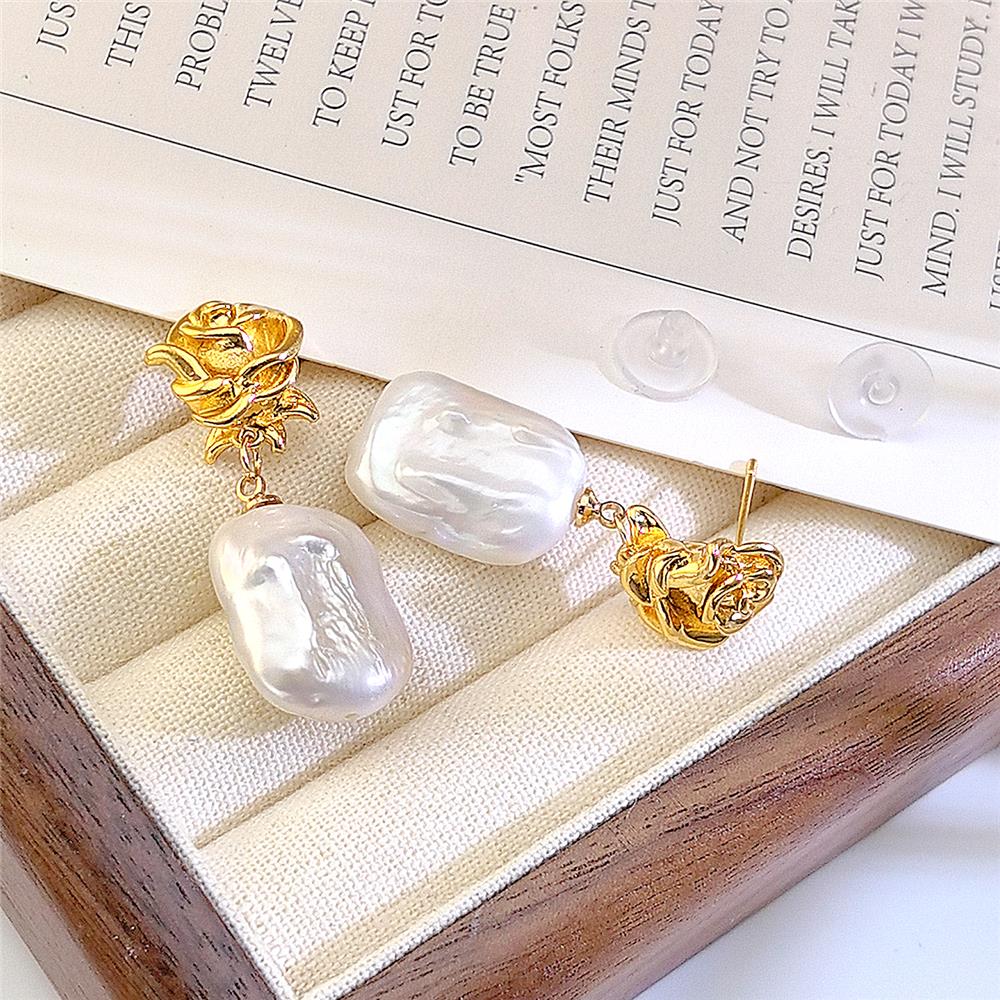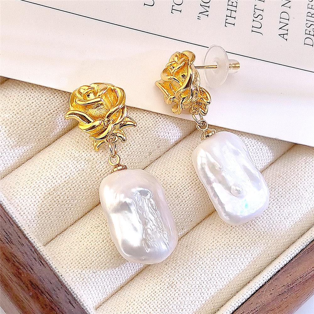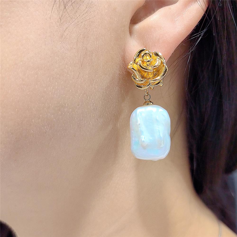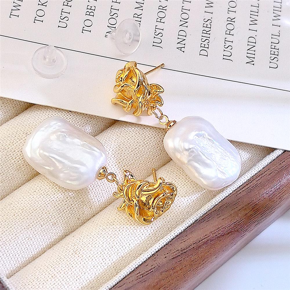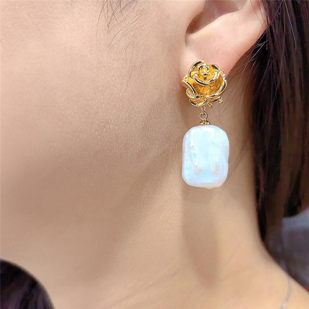 perle d'eau douce cultivée Boucle d'oreille goutte, avec laiton, laiton boucle d'oreille dormeuse, fleur, blanc Vendu par paire