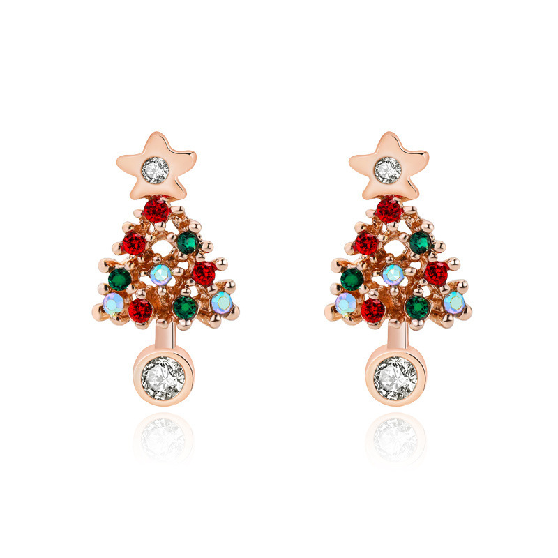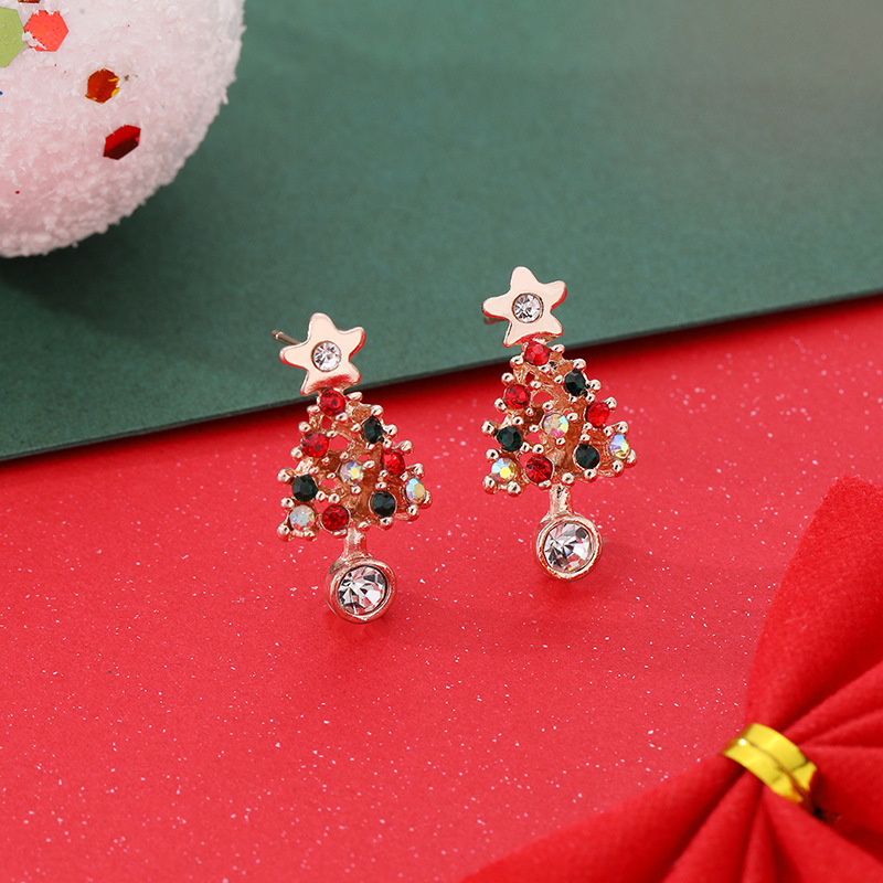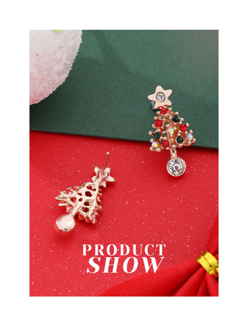 Boucles d'oreilles de Noël, laiton, arbre de noël, Placage, bijoux de mode & avec strass, couleurs mélangées, 23.8x12.4mm, Vendu par paire