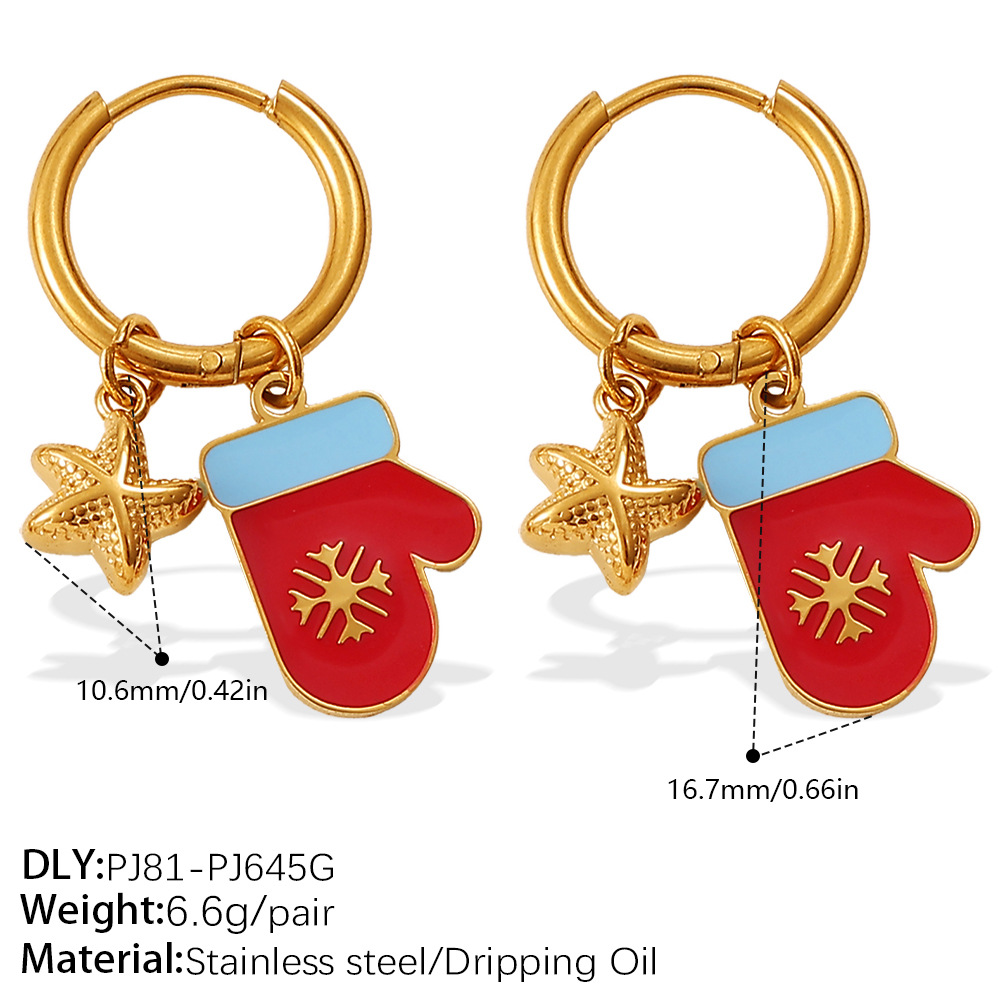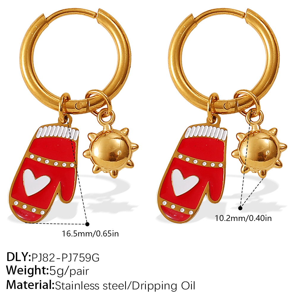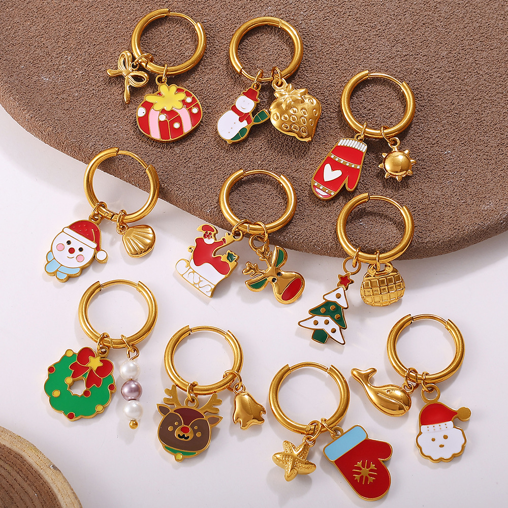 Boucles d'oreilles de Noël, Acier inoxydable 304, Plaqué or 18K, Conception de Noël & styles différents pour le choix & pour femme & émail, Vendu par paire