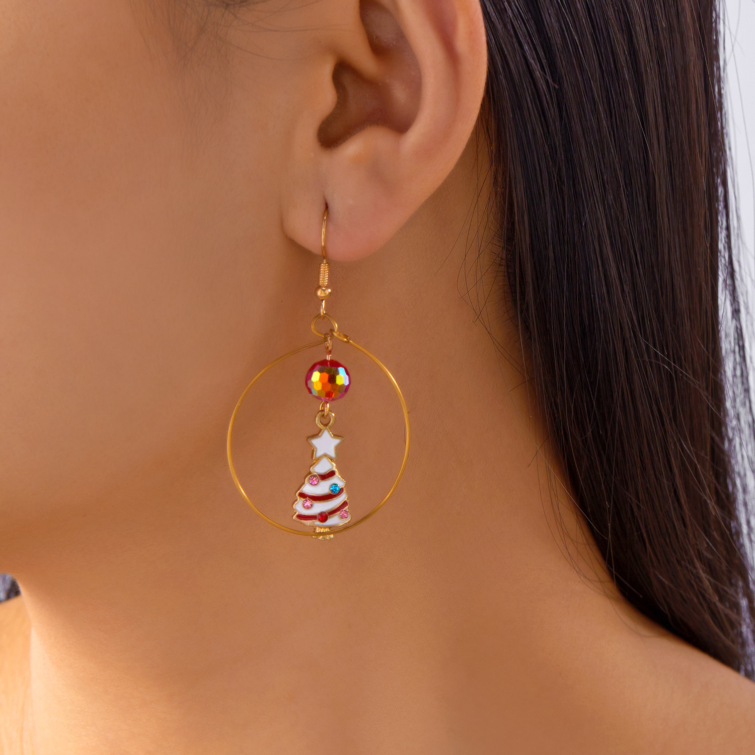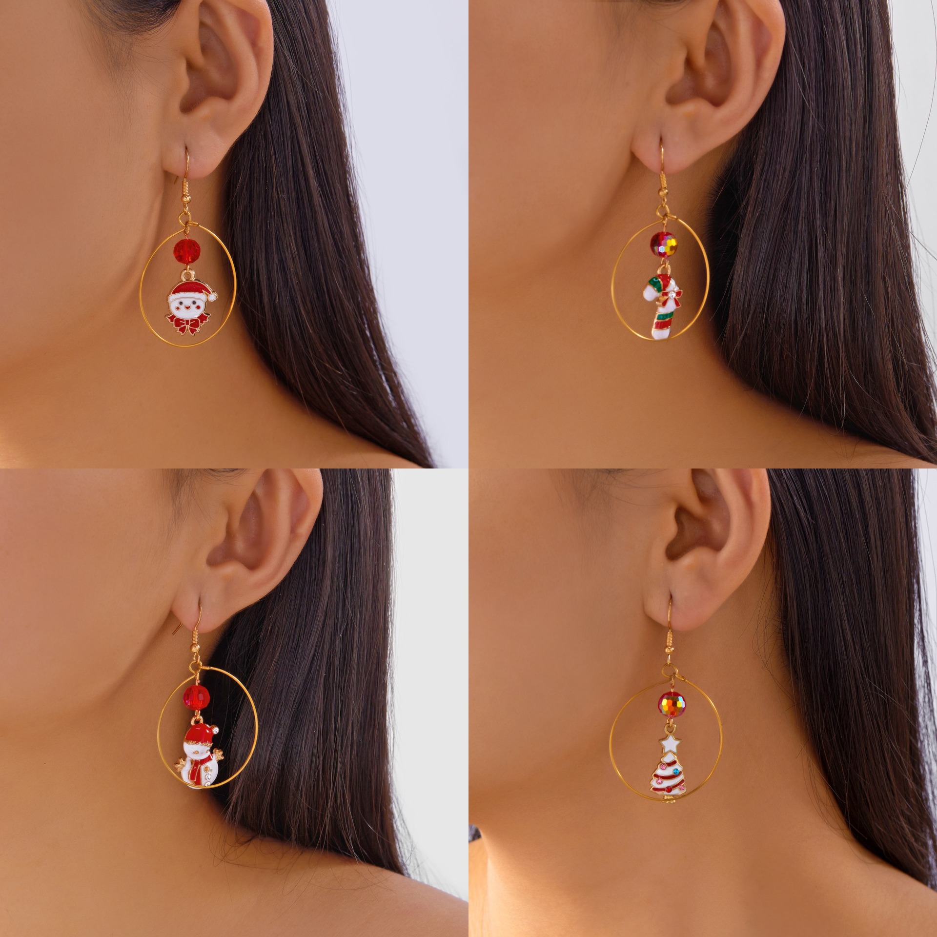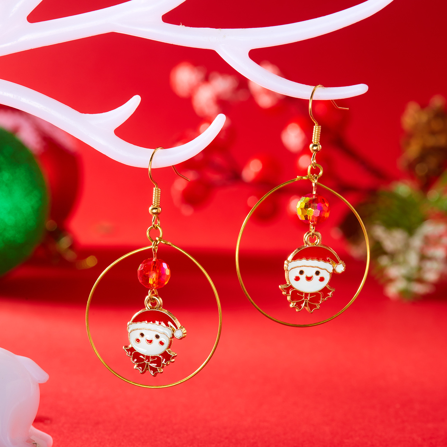 Boucles d'oreilles de Noël, alliage de zinc, avec cristal, Placage de couleur d'or, Conception de Noël & émail & avec strass, plus de couleurs à choisir, Vendu par paire