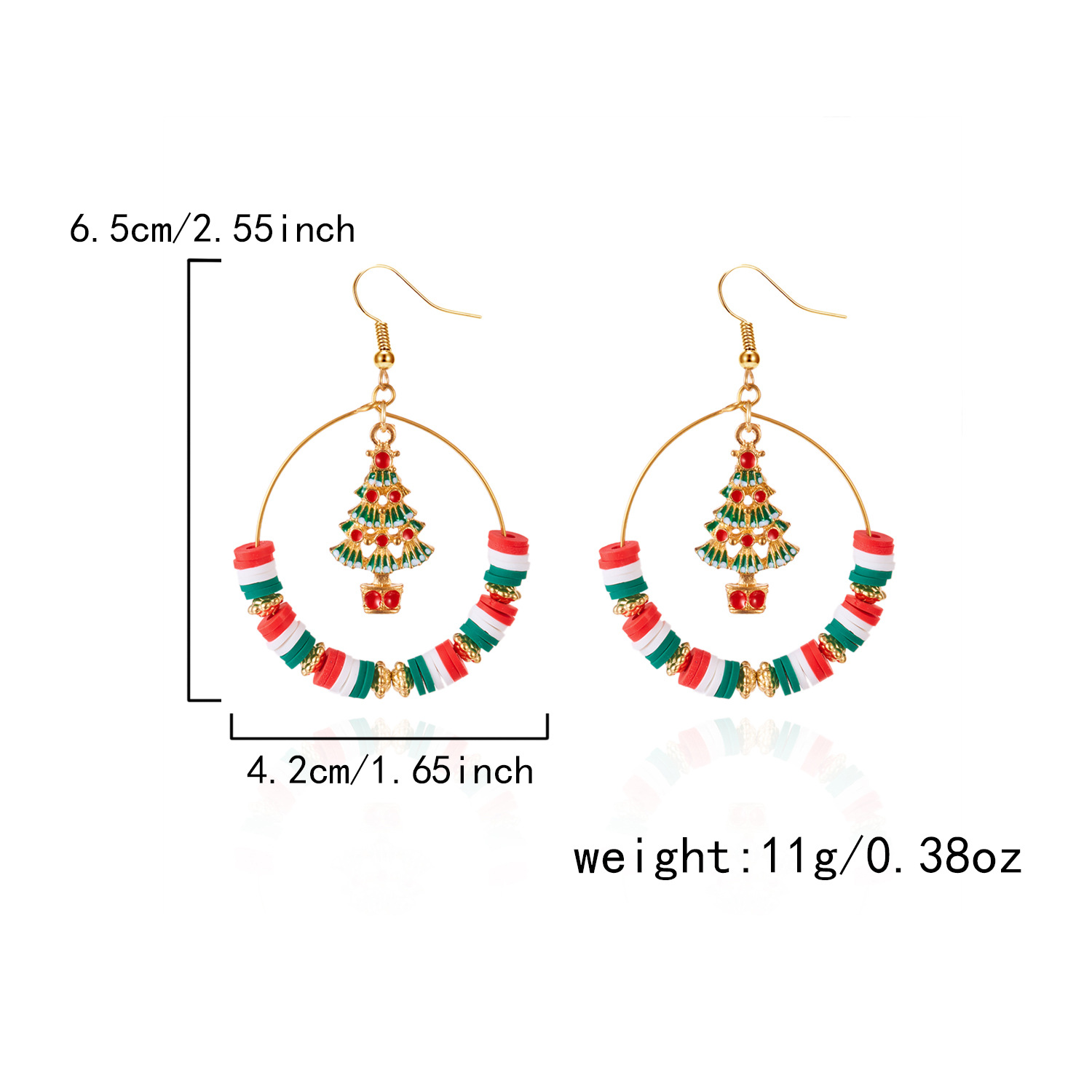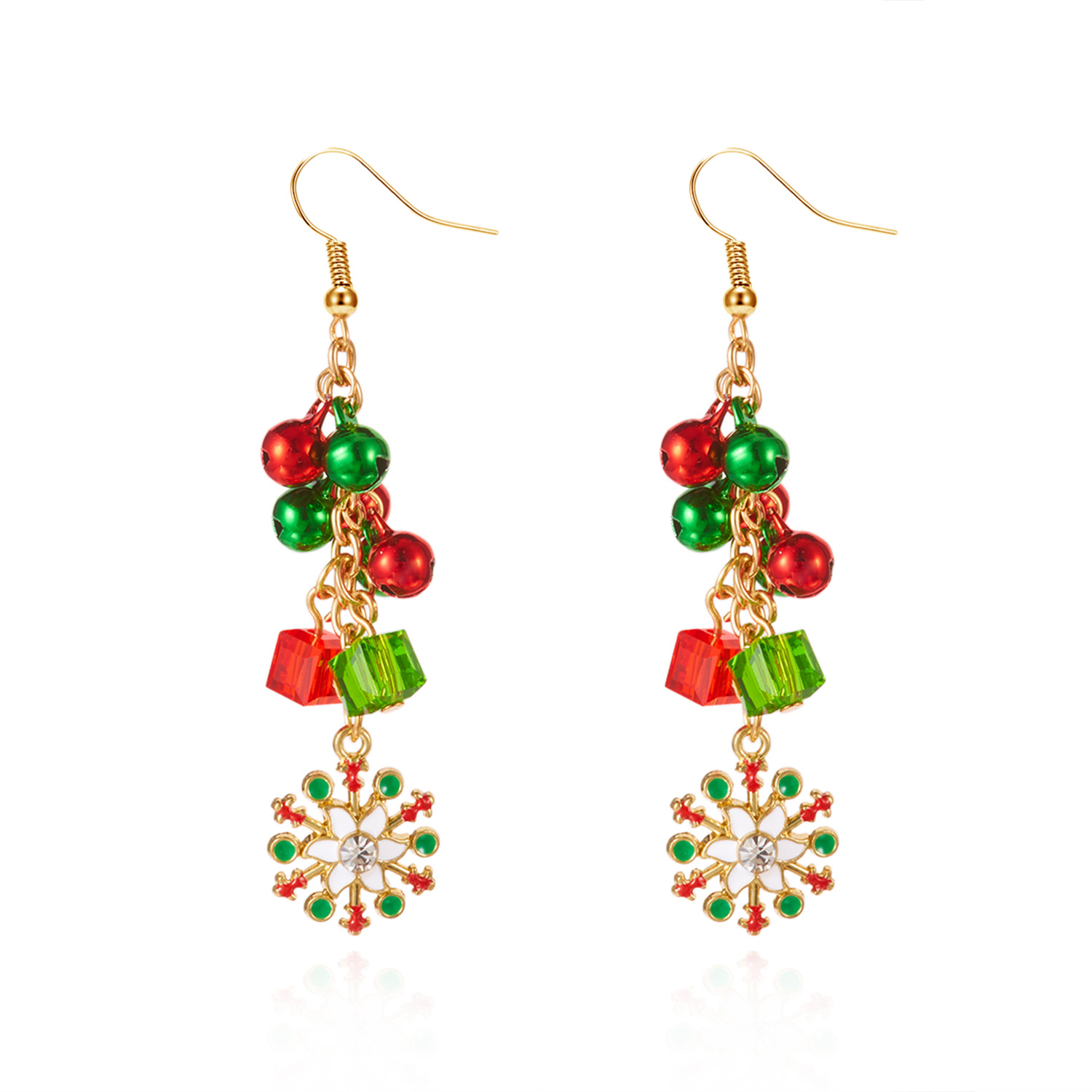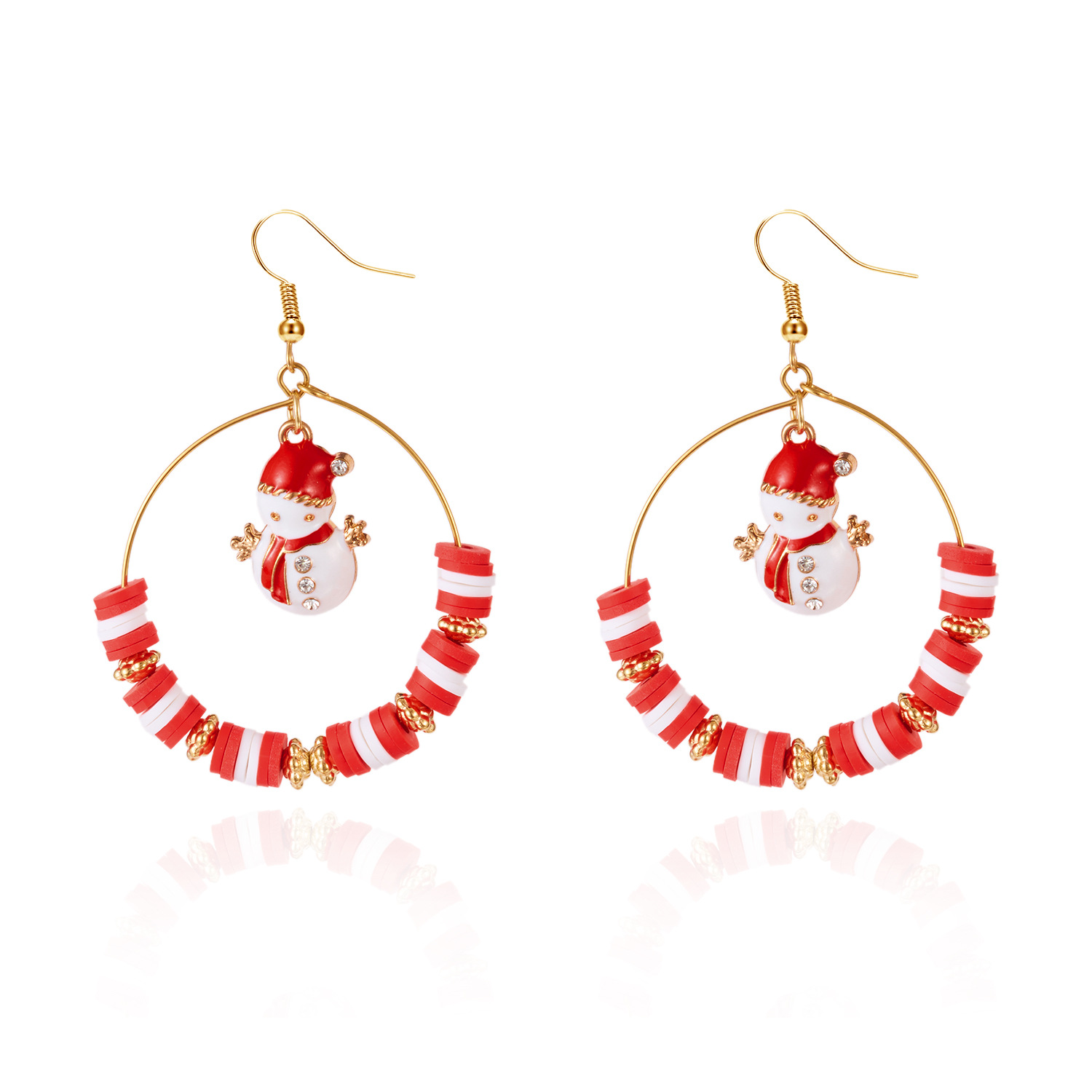 Boucles d'oreilles de Noël, alliage de zinc, avec argile de polymère, Placage de couleur d'or, Conception de Noël & émail & avec strass, plus de couleurs à choisir, Vendu par paire
