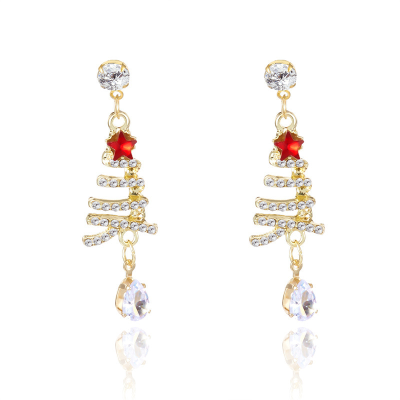 Boucles d'oreilles de Noël, alliage de zinc, Placage de couleur d'or, Conception de Noël & émail & avec strass, plus de couleurs à choisir, Vendu par paire