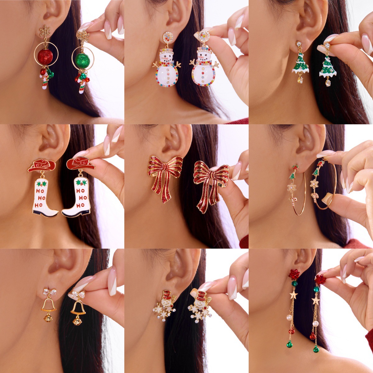 Boucles d'oreilles de Noël, alliage de zinc, avec cristal & perle de plastique, Conception de Noël & styles différents pour le choix & pour femme, Vendu par paire