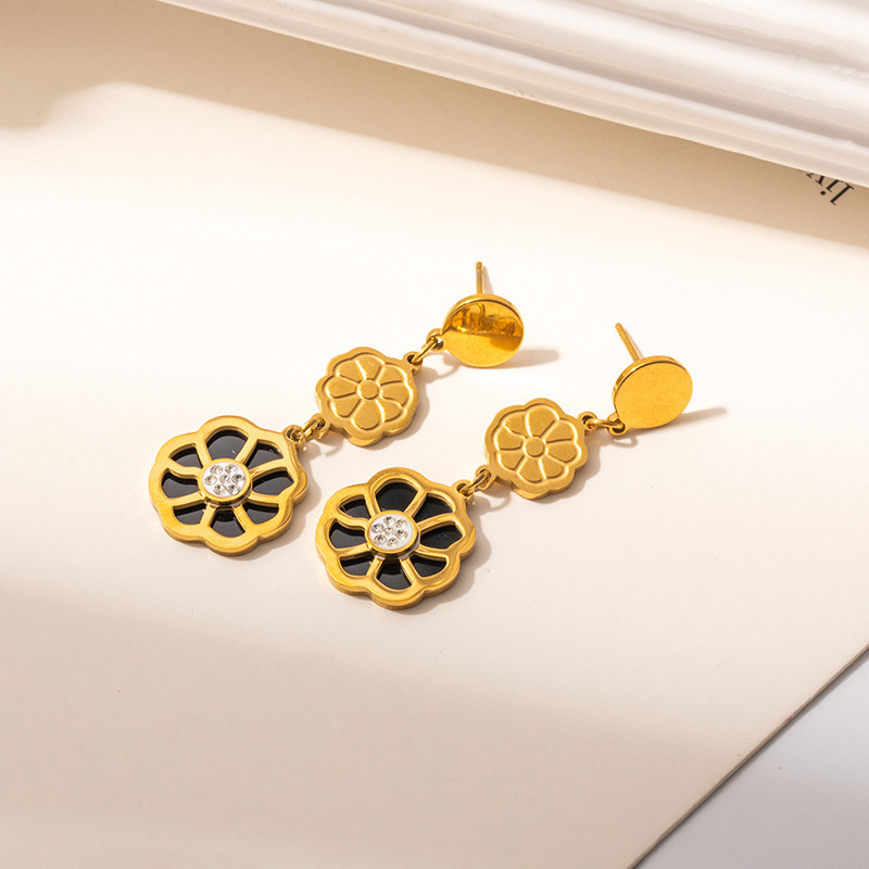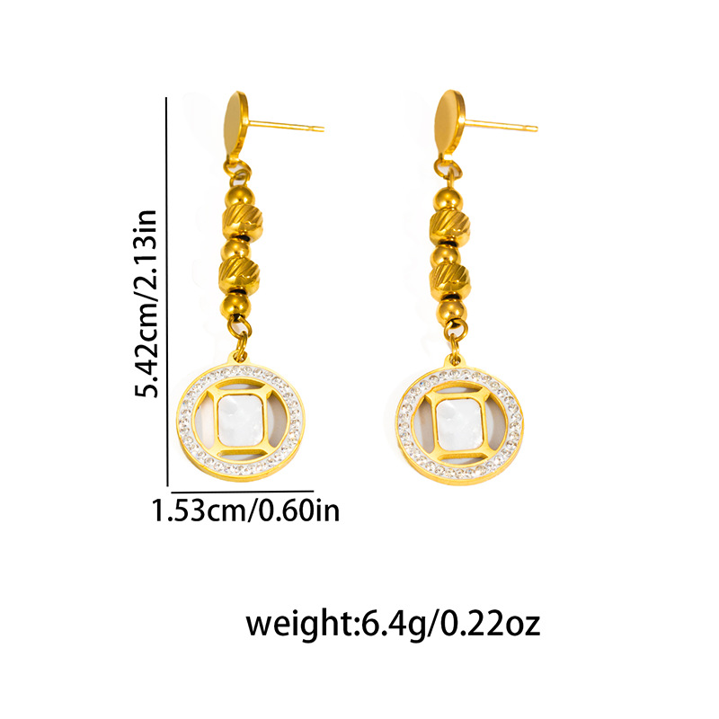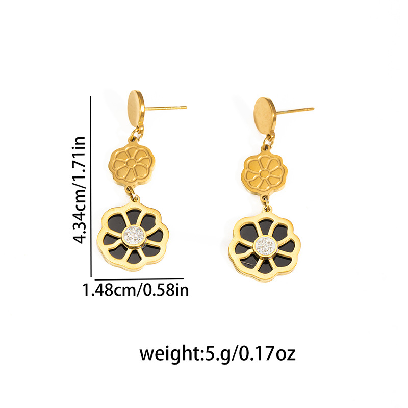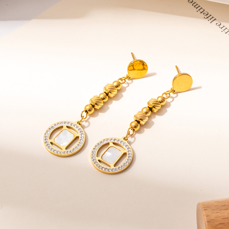 Boucles d'oreilles en acier titane, avec coquille noire & coquille blanche, Placage de couleur d'or, bijoux de mode & pavé de micro zircon, plus de couleurs à choisir, Vendu par paire