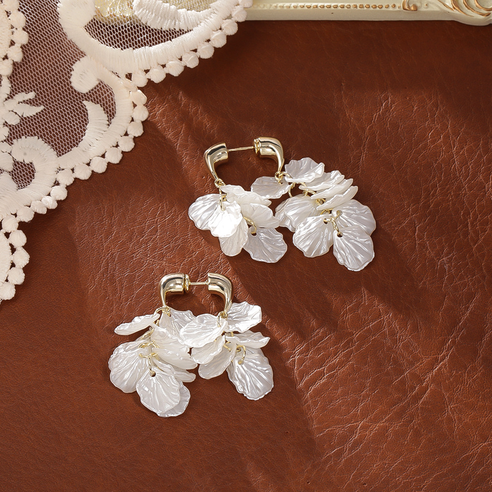 Boucles d'oreilles en coquille blanche, laiton, avec coquille, Plaqué d'or, bijoux de mode & pour femme, Vendu par paire