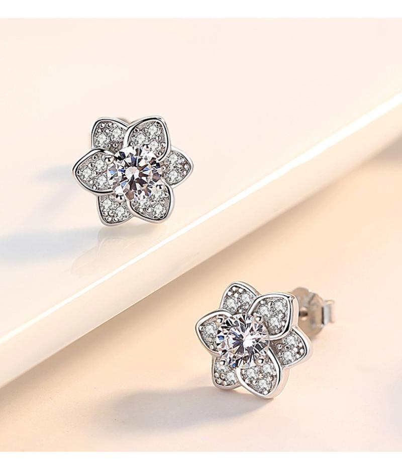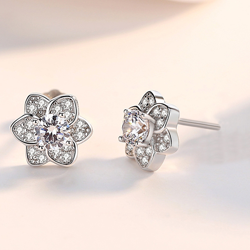 Boucles d'oreilles en laiton zircon cubique pavent, fleur, Placage, bijoux de mode & pavé de micro zircon, plus de couleurs à choisir, 6x6mm, Vendu par paire
