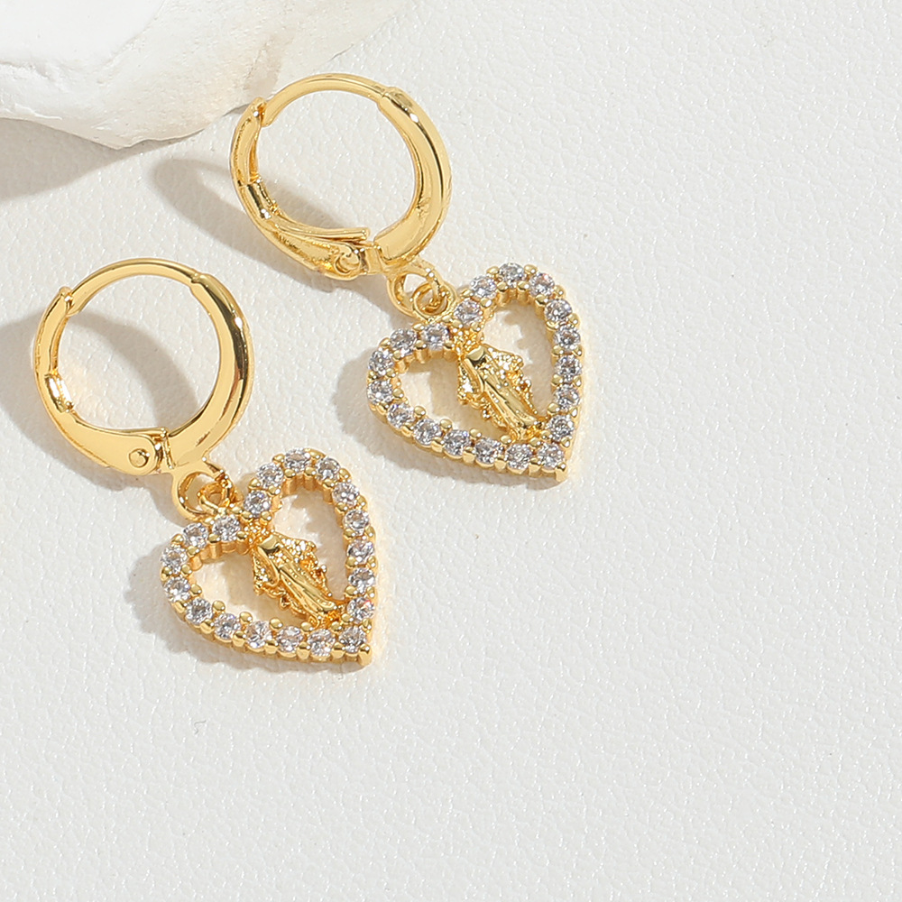 Boucles d'oreilles en laiton zircon cubique pavent, Plaqué de couleur d'or rose, pavé de micro zircon Vendu par paire