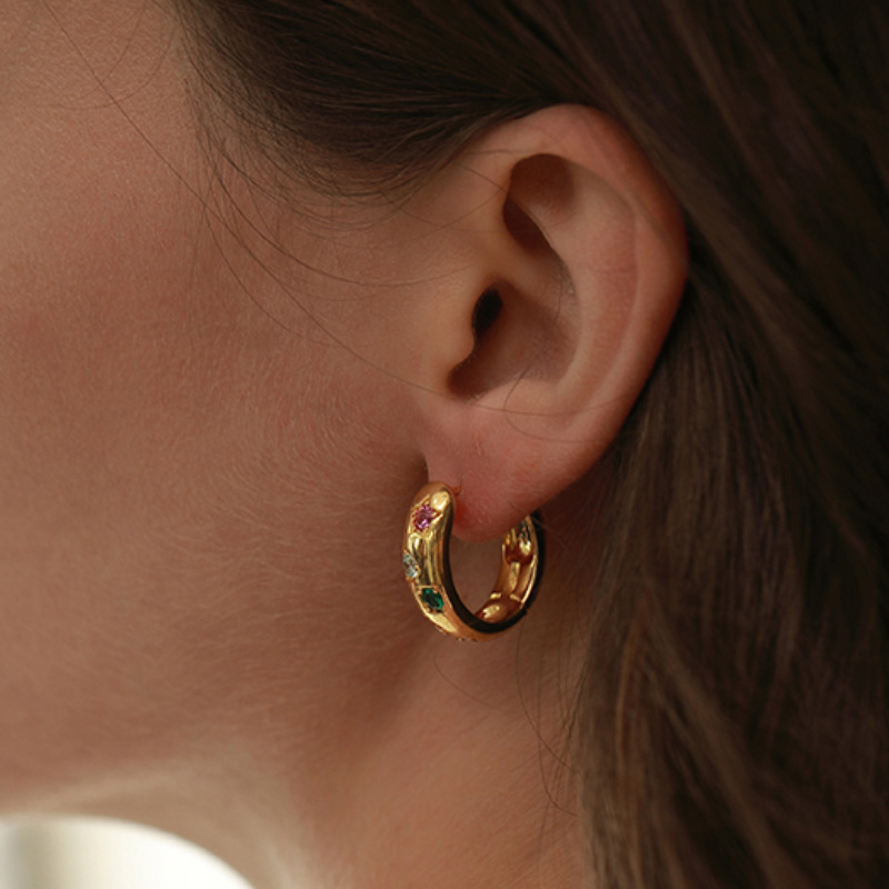 Boucles d'oreilles en laiton zircon cubique pavent, Plaqué de couleur d'or rose, pavé de micro zircon Vendu par paire