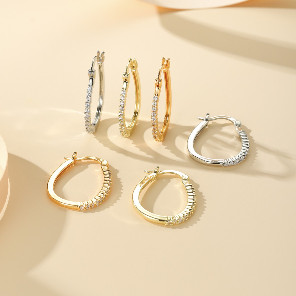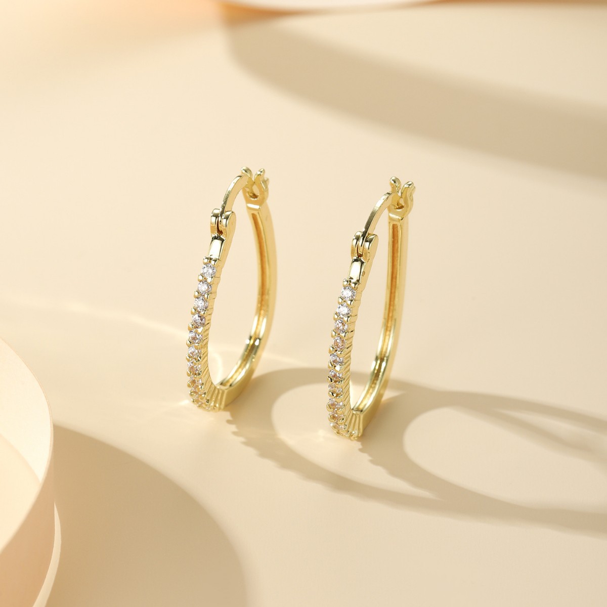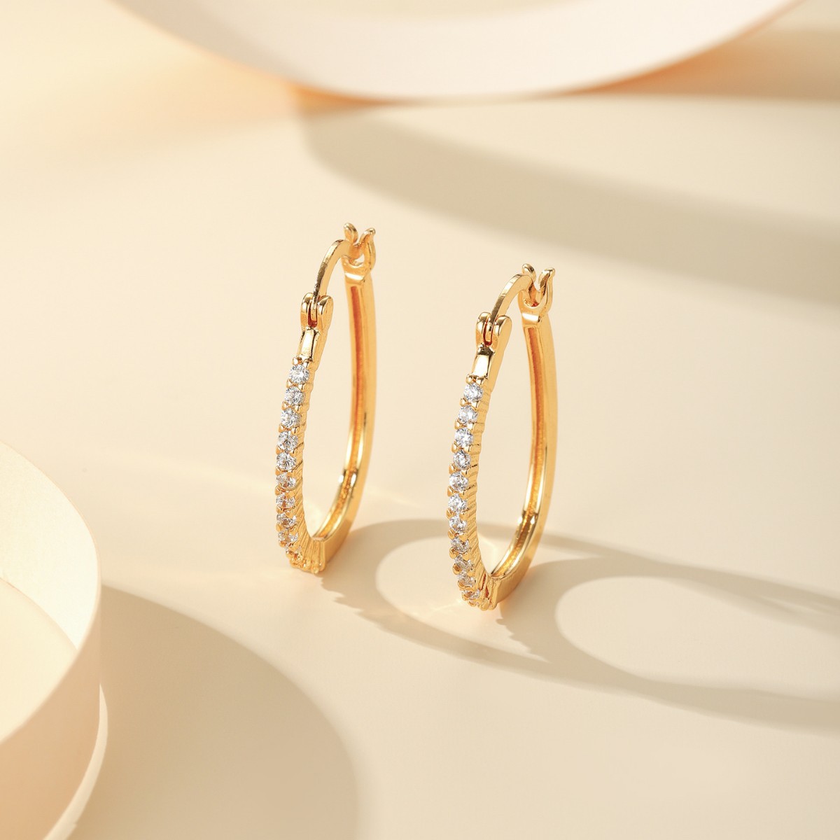 Boucles d'oreilles en laiton zircon cubique pavent, Plaqué de couleur d'or rose, pavé de micro zircon Vendu par paire