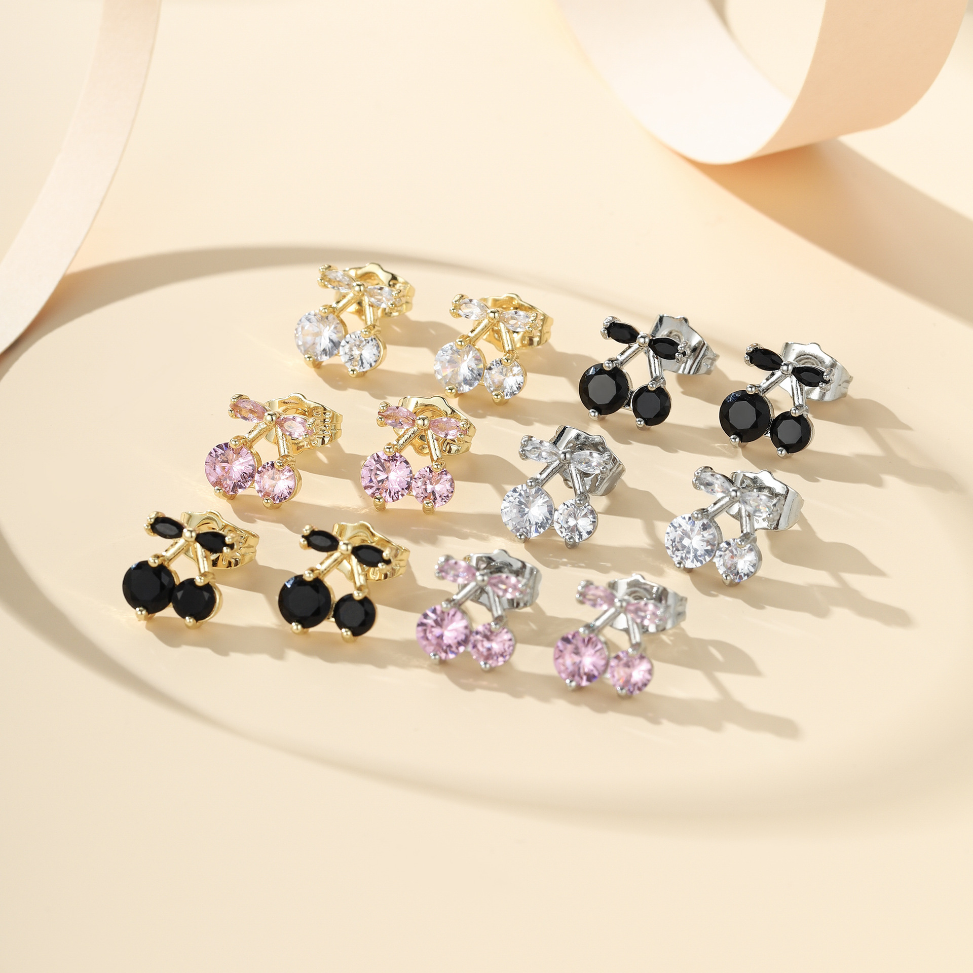 Boucles d'oreilles en laiton zircon cubique pavent, Plaqué de couleur d'or rose, pavé de micro zircon Vendu par paire