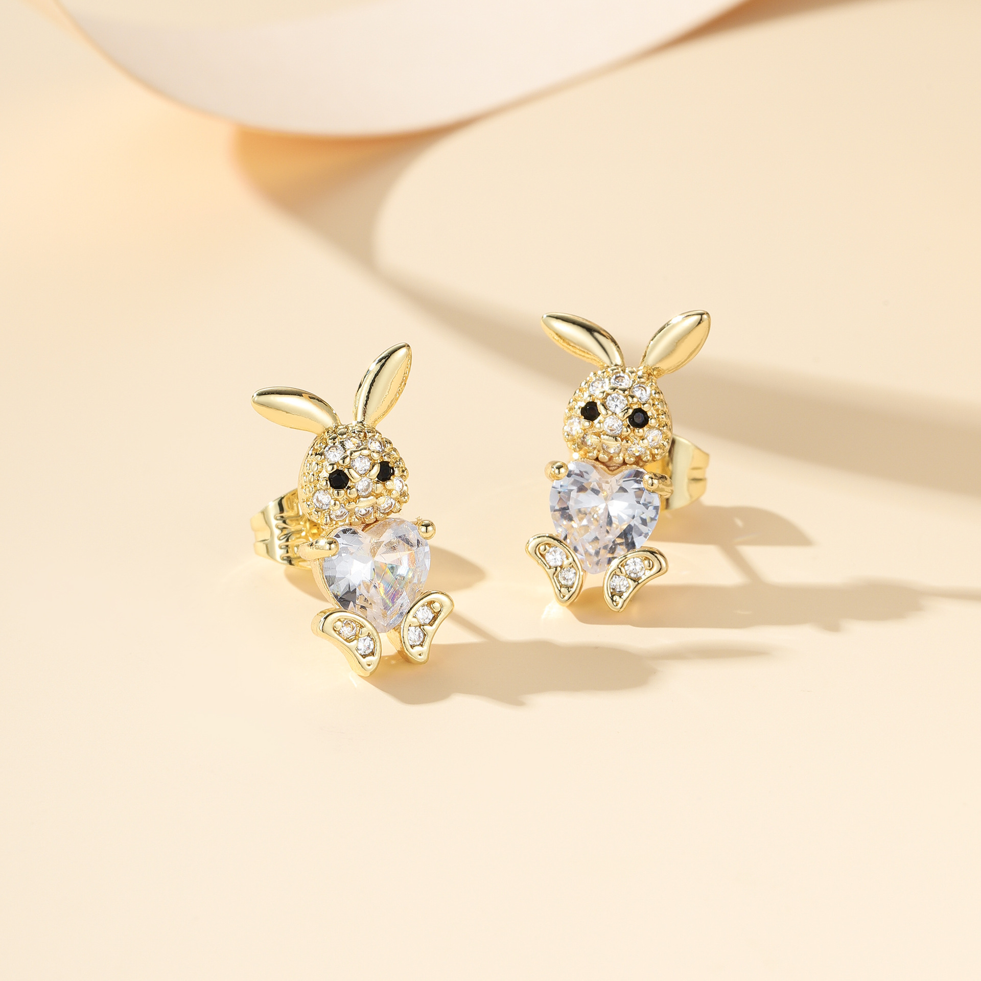 Boucles d'oreilles en laiton zircon cubique pavent, Plaqué de couleur d'or rose, pavé de micro zircon Vendu par paire