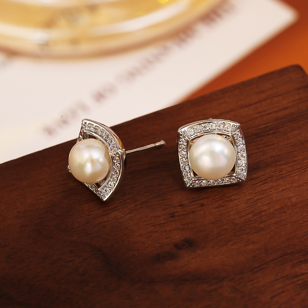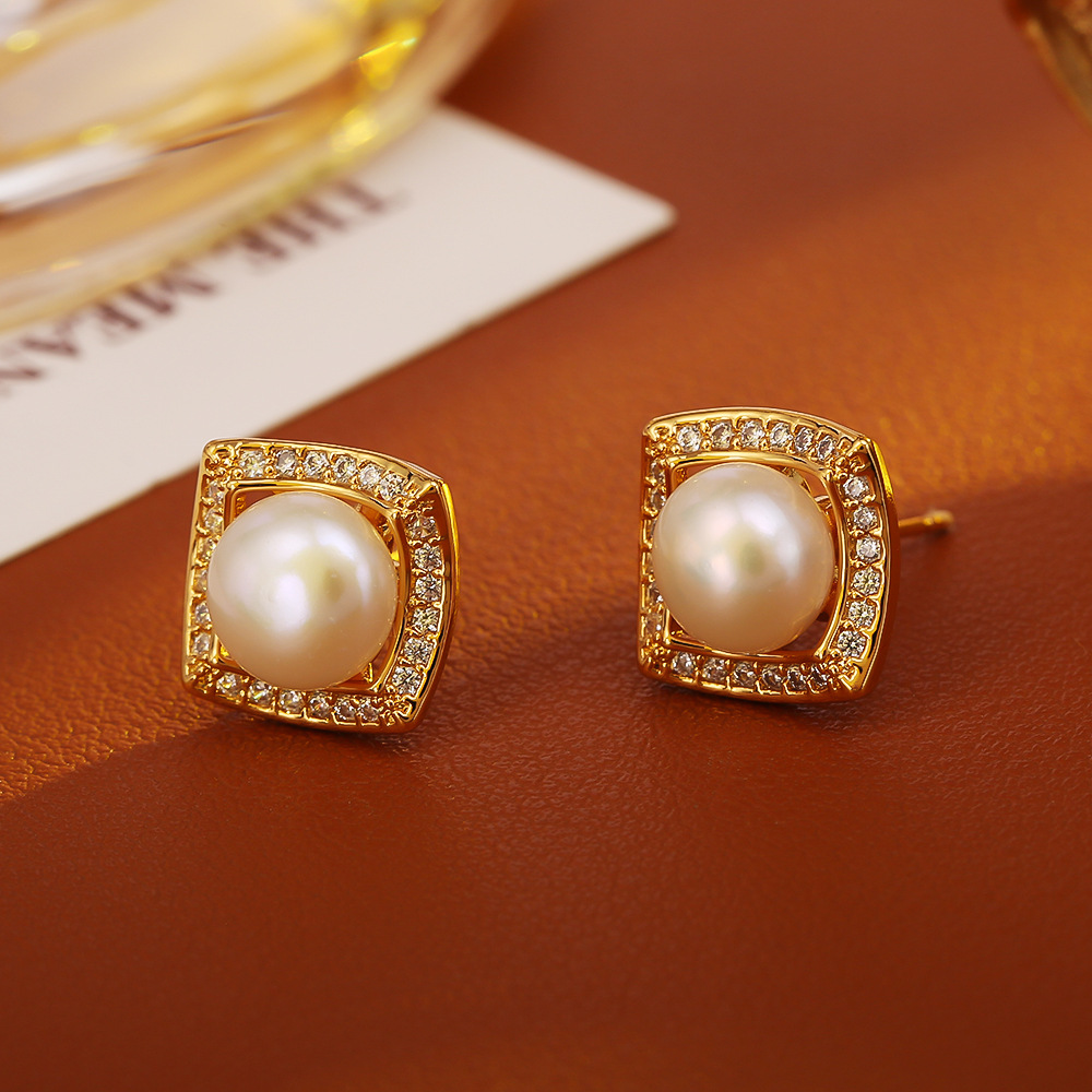 Boucles d'oreilles en laiton zircon cubique pavent, avec perle d'eau douce cultivée, Placage, bijoux de mode & pavé de micro zircon & pour femme, plus de couleurs à choisir, Vendu par paire