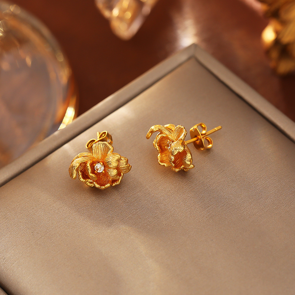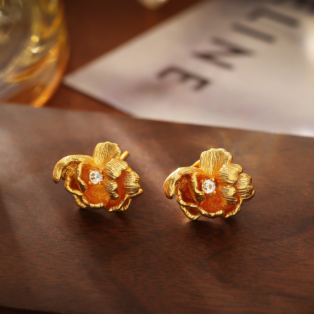 Boucles d'oreilles en laiton zircon cubique pavent, fleur, Plaqué d'or rose, pavé de micro zircon & pour femme Vendu par paire