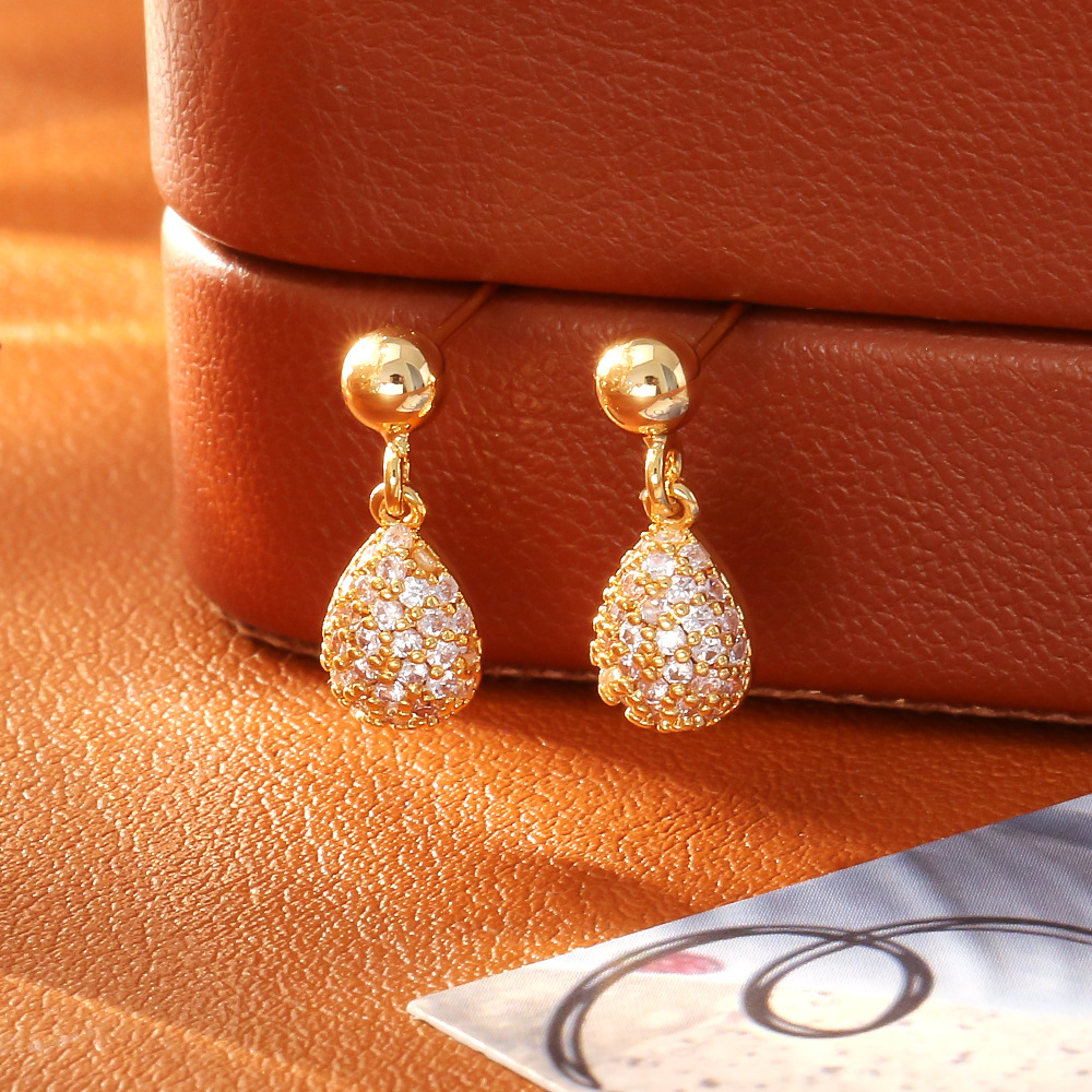 Boucles d'oreilles en laiton zircon cubique pavent, larme, Plaqué d'or, bijoux de mode & pavé de micro zircon & pour femme, Vendu par paire