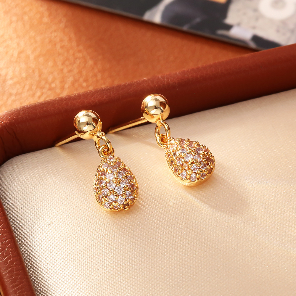 Boucles d'oreilles en laiton zircon cubique pavent, Plaqué de couleur d'or rose, pavé de micro zircon Vendu par paire