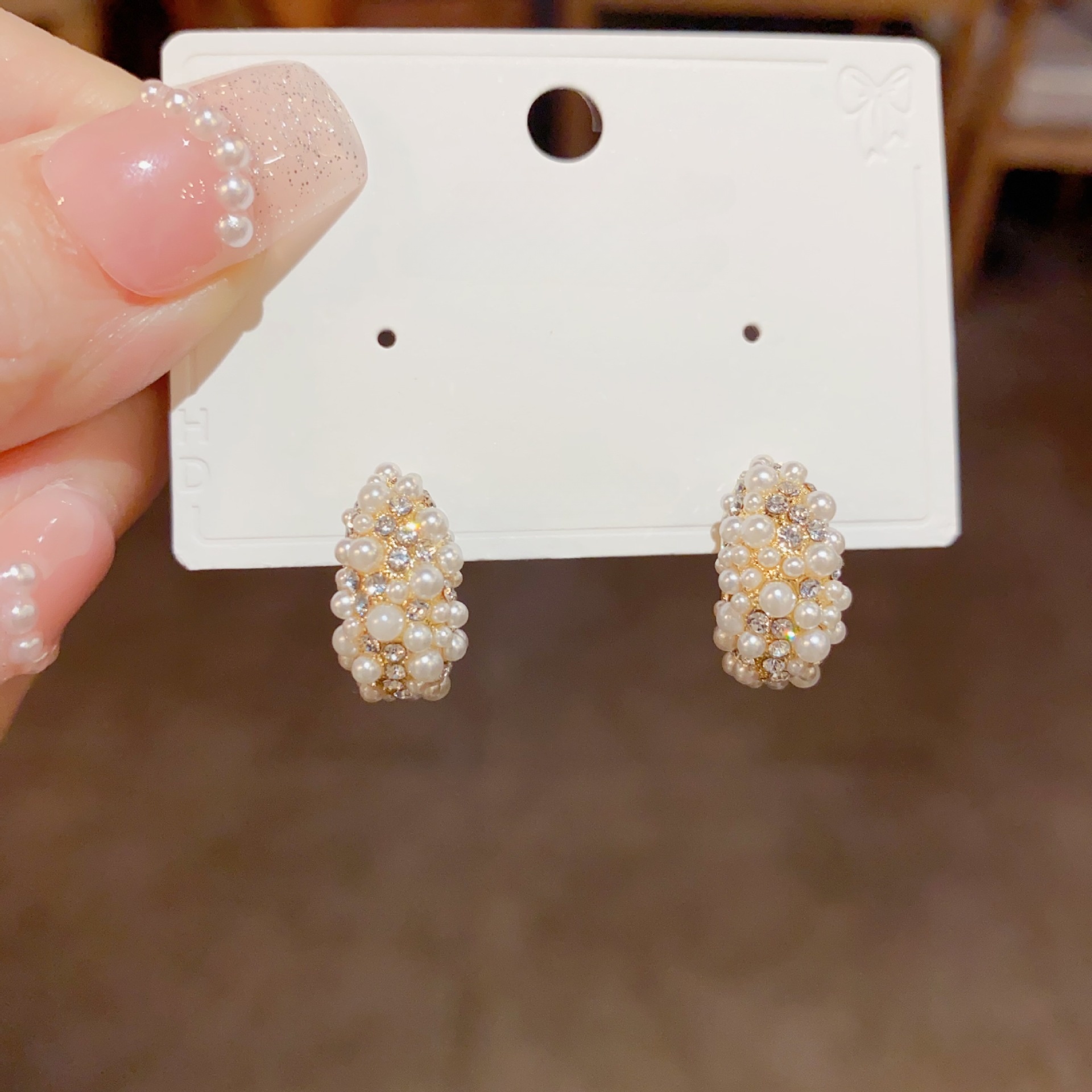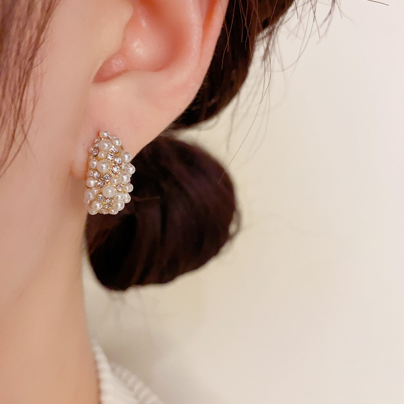 Boucles d'oreilles en laiton zircon cubique pavent, avec perle de plastique, Plaqué d'or, bijoux de mode & pavé de micro zircon & pour femme, 18x10mm, Vendu par paire