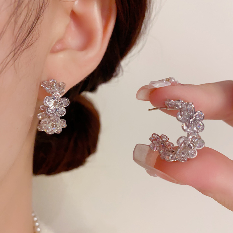 Boucles d'oreilles en laiton zircon cubique pavent, fleur, Plaqué d'or rose, pavé de micro zircon & pour femme Vendu par paire