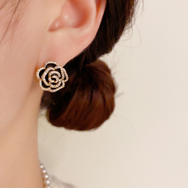 Boucles d'oreilles en laiton zircon cubique pavent, fleur, Plaqué d'or rose, pavé de micro zircon & pour femme Vendu par paire