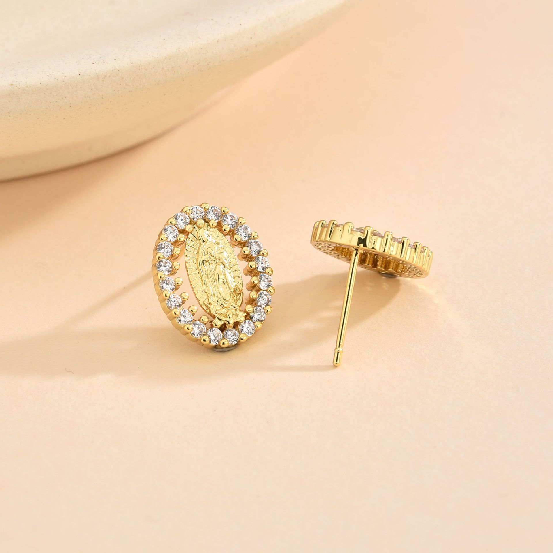 Boucles d'oreilles en laiton zircon cubique pavent, Plaqué de couleur d'or rose, pavé de micro zircon Vendu par paire