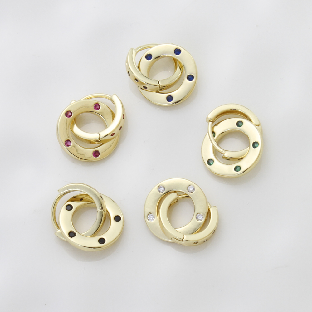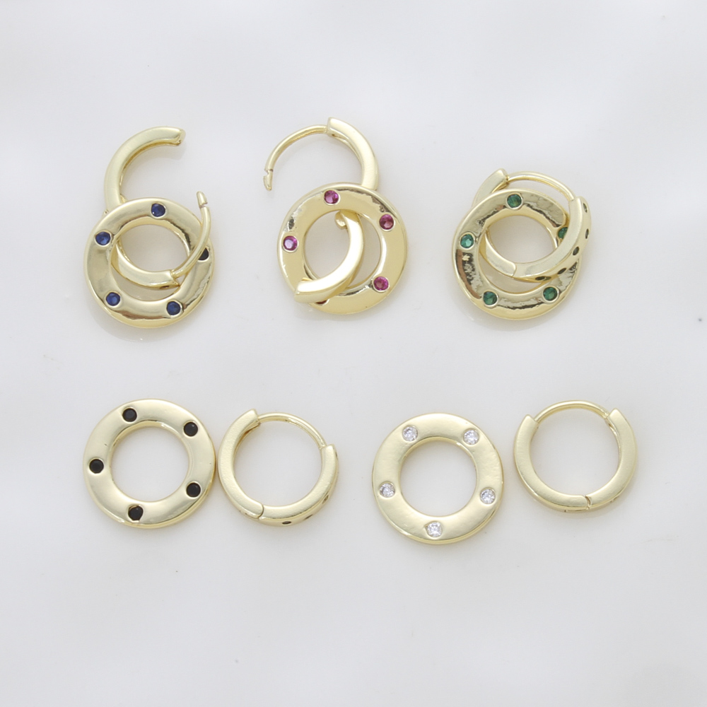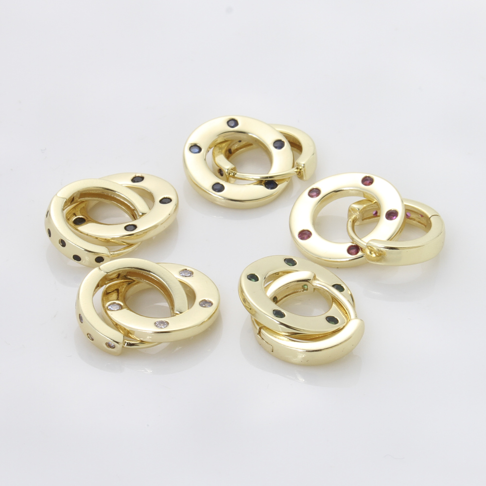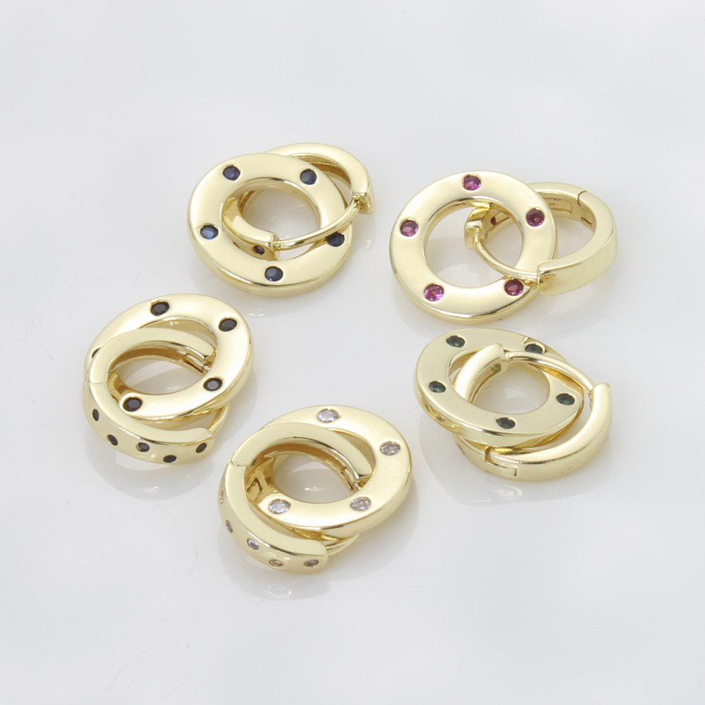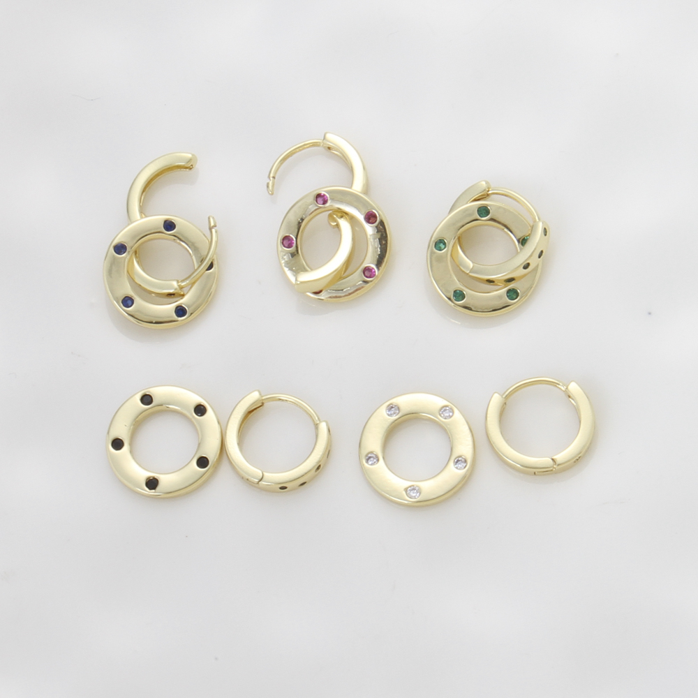 Boucles d'oreilles en laiton zircon cubique pavent, cadre, Placage, pavé de micro zircon & pour femme, plus de couleurs à choisir, protéger l'environnement, sans nickel, plomb et cadmium, 11mm, Vendu par paire