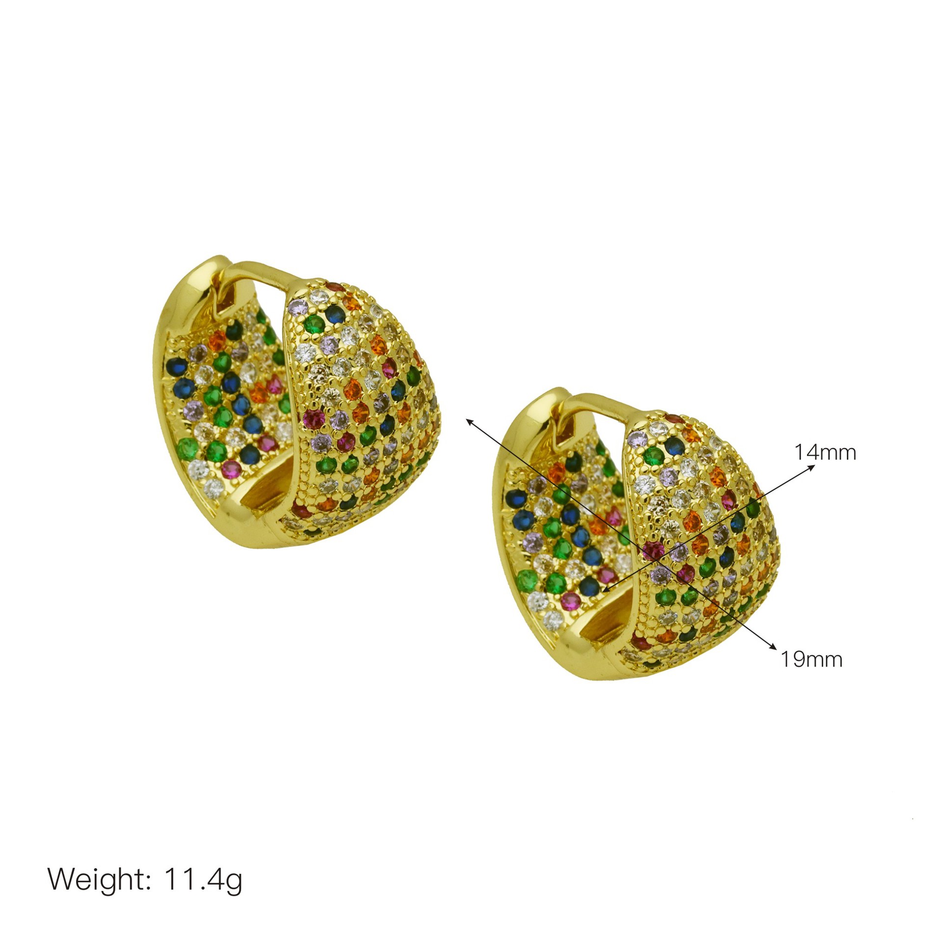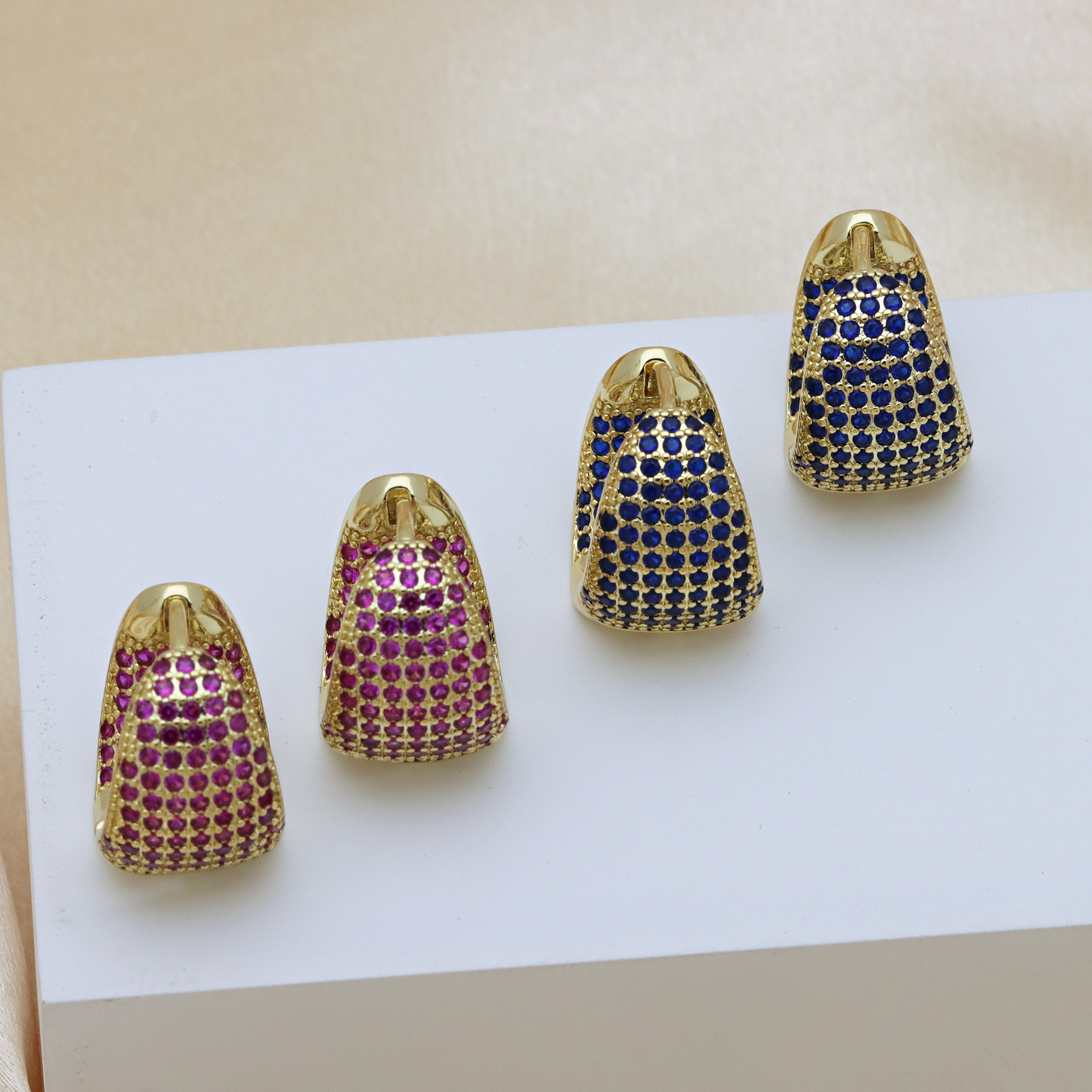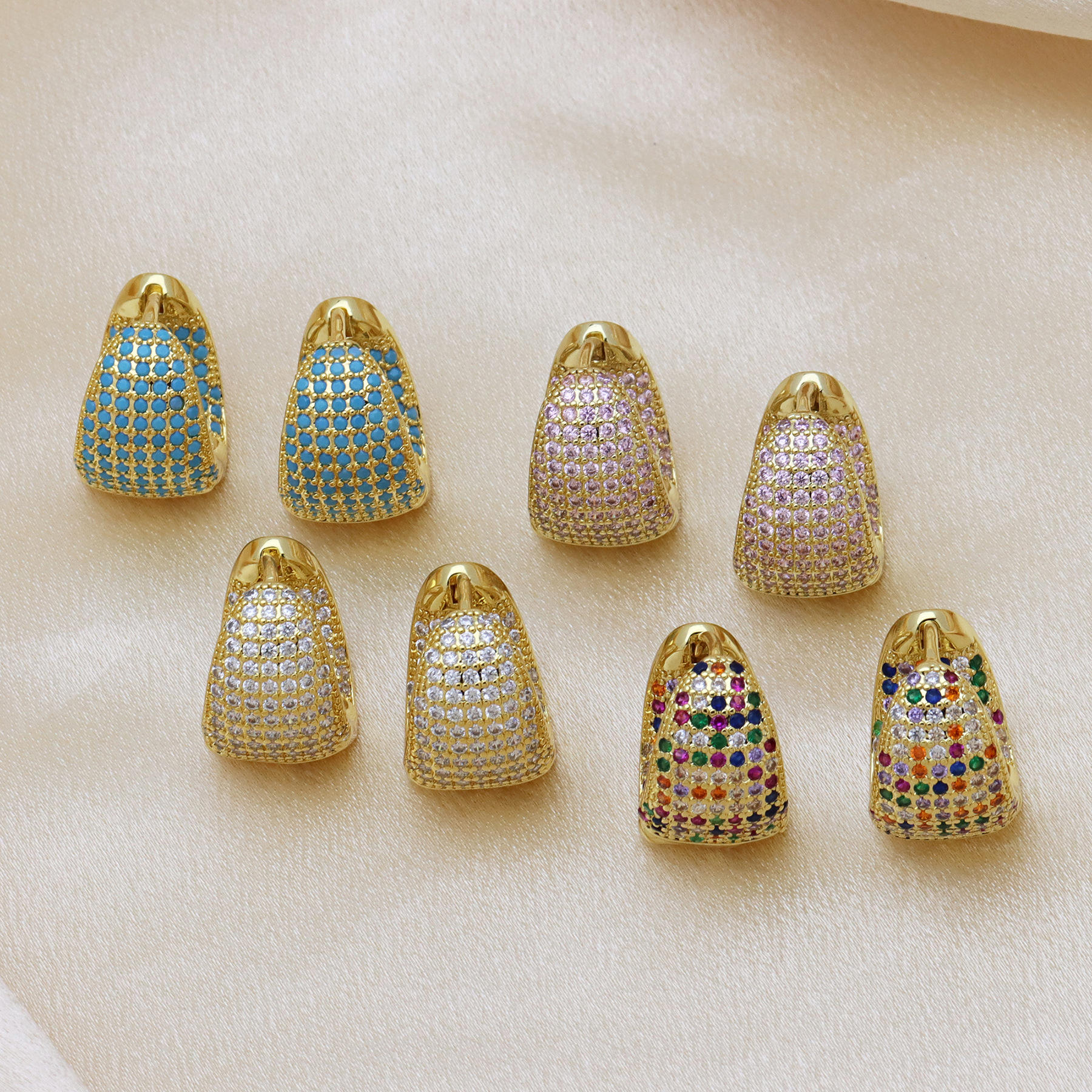 Boucles d'oreilles en laiton zircon cubique pavent, Placage de couleur d'or, pavé de micro zircon & pour femme, plus de couleurs à choisir, 14x19mm, Vendu par paire