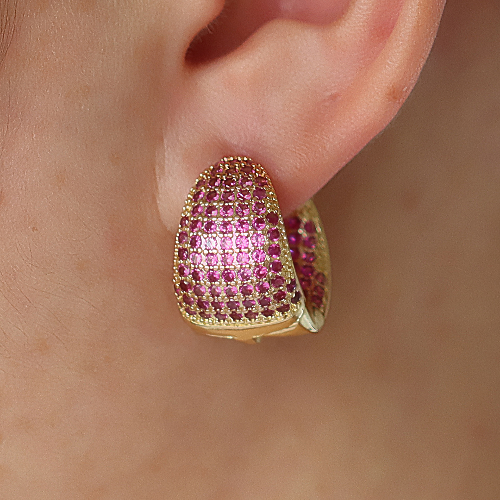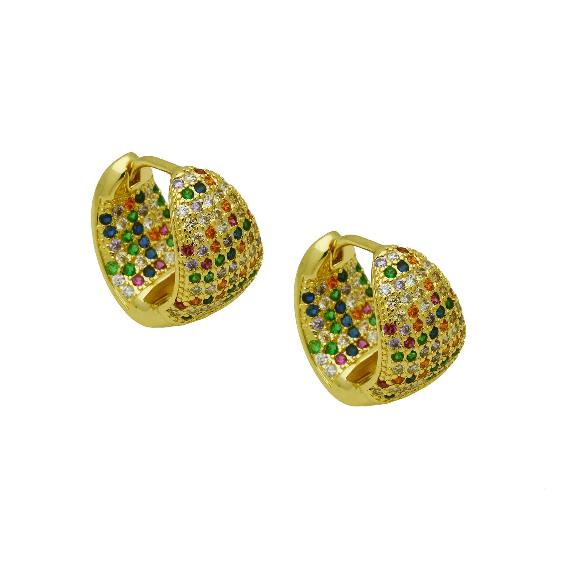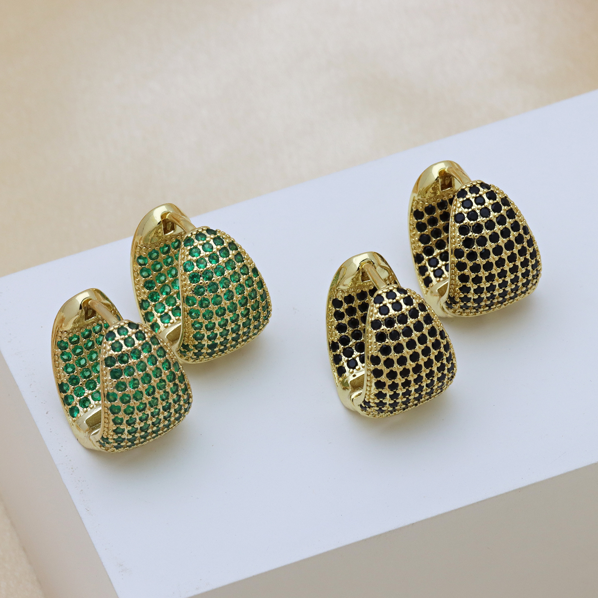 Boucles d'oreilles en laiton zircon cubique pavent, Placage de couleur d'or, pavé de micro zircon & pour femme, plus de couleurs à choisir, 14x19mm, Vendu par paire