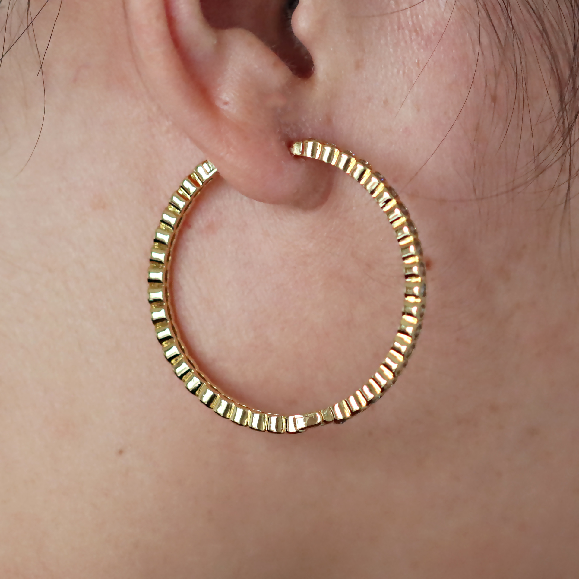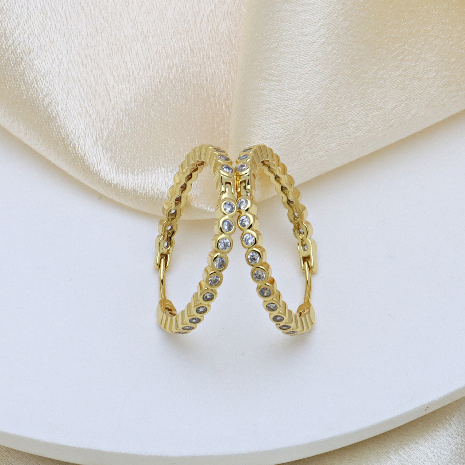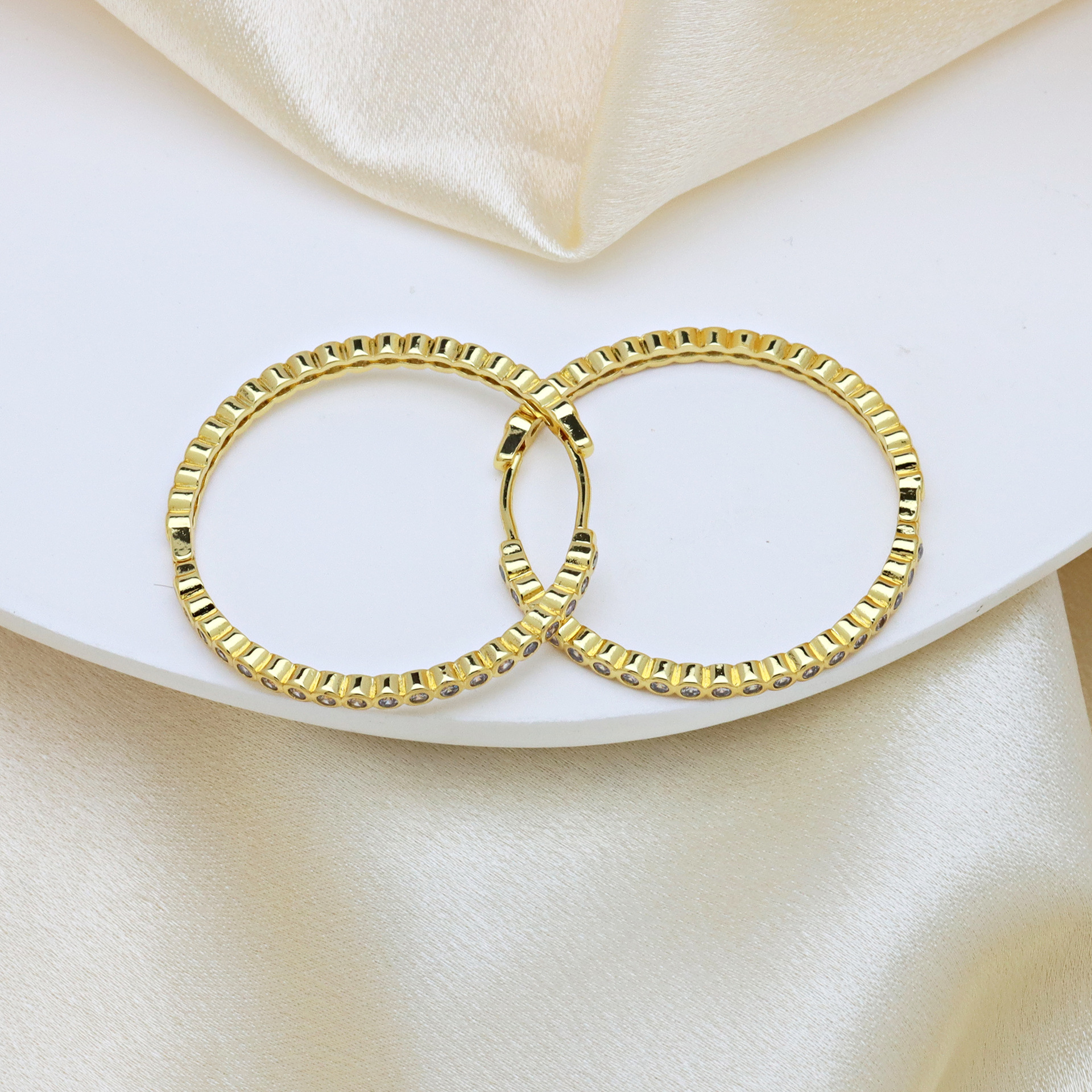 Boucles d'oreilles en laiton zircon cubique pavent, Placage, pavé de micro zircon & pour femme & creux, Vendu par paire