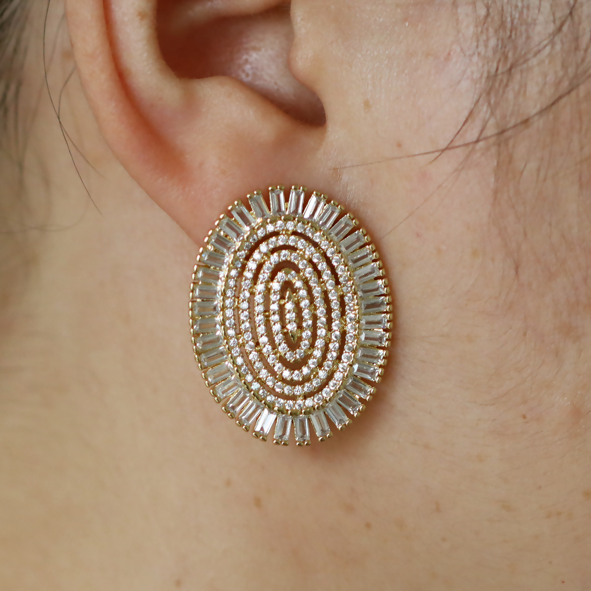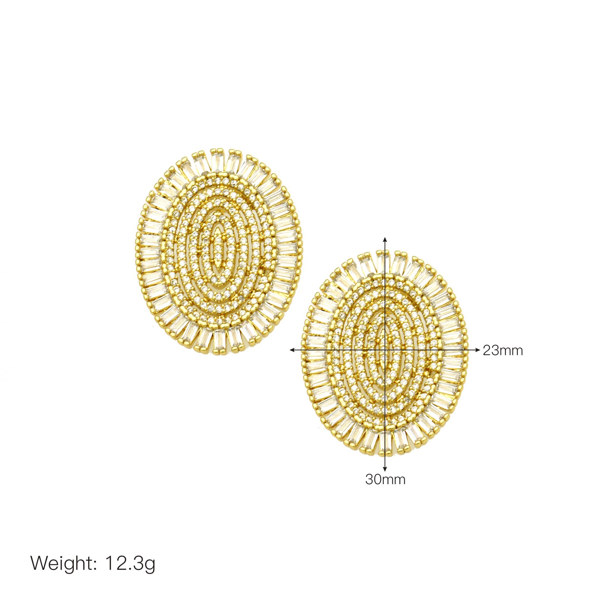 Boucles d'oreilles en laiton zircon cubique pavent, Placage de couleur d'or, pour femme & avec zircone cubique, 23x30mm, Vendu par paire