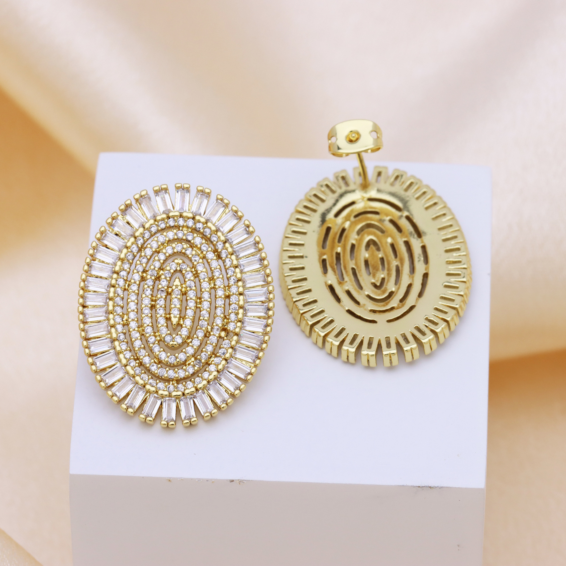 Boucles d'oreilles en laiton zircon cubique pavent, Placage, pavé de micro zircon & pour femme & creux, Vendu par paire