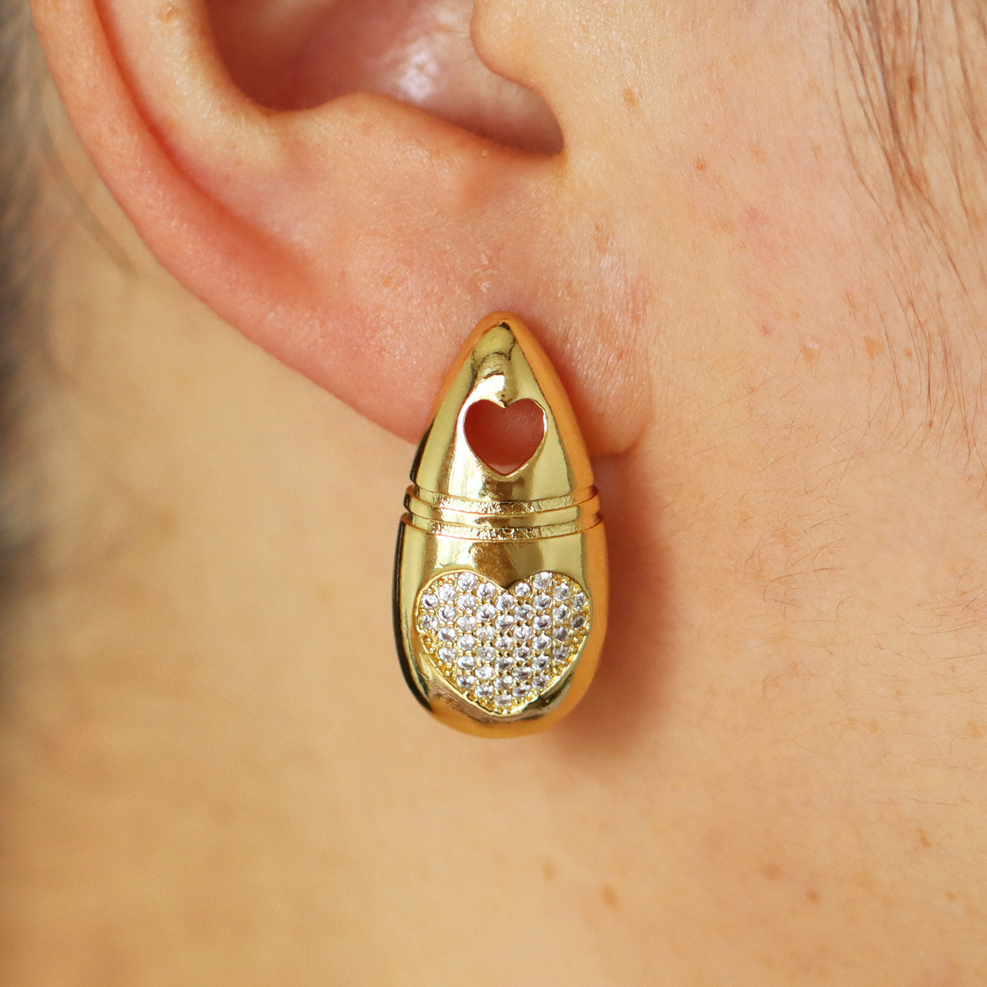 Boucles d'oreilles en laiton zircon cubique pavent, Placage, pavé de micro zircon & pour femme & creux, Vendu par paire