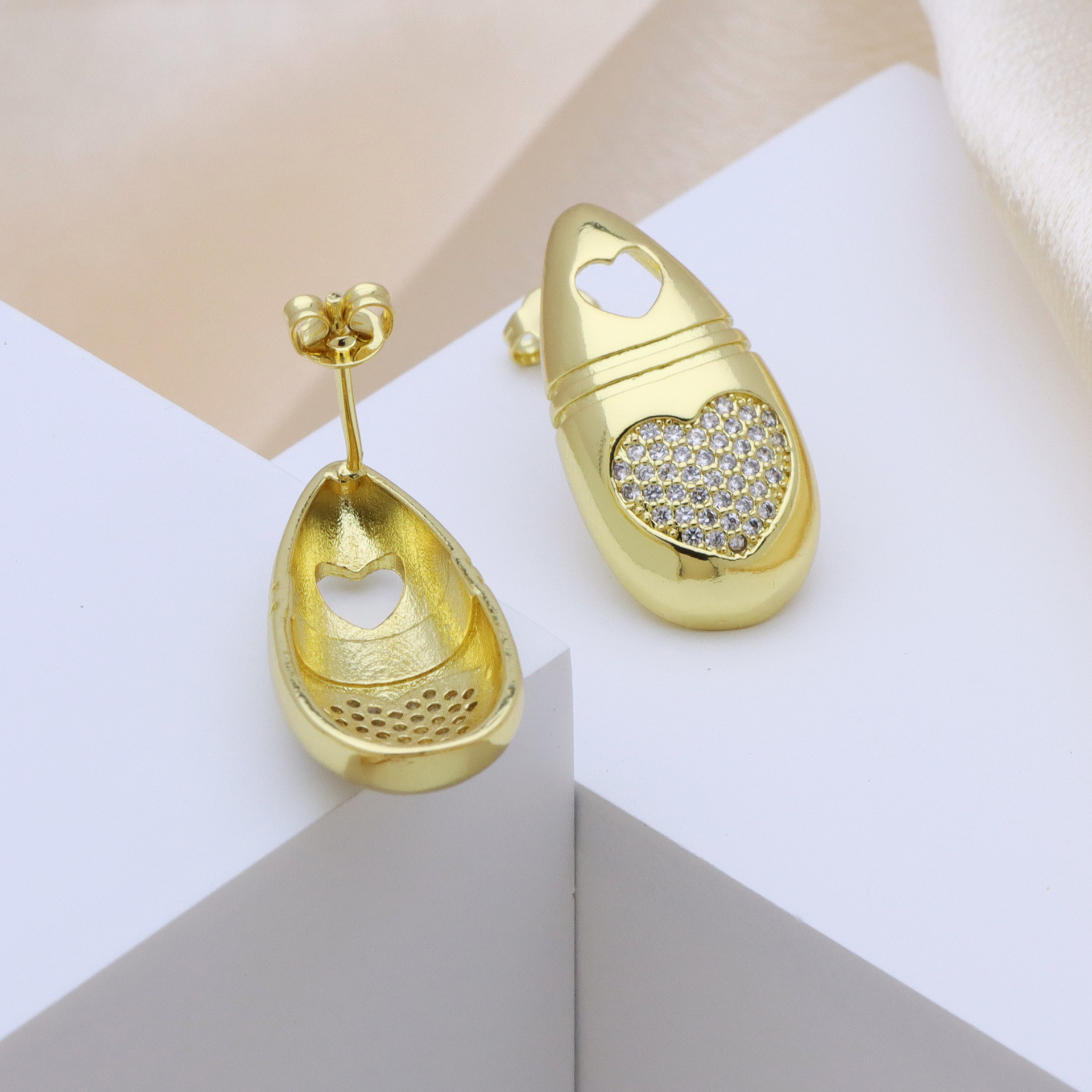 Boucles d'oreilles en laiton zircon cubique pavent, Épingles de Kilt, Placage de couleur d'or, bijoux de mode & pavé de micro zircon & pour femme, doré Vendu par paire
