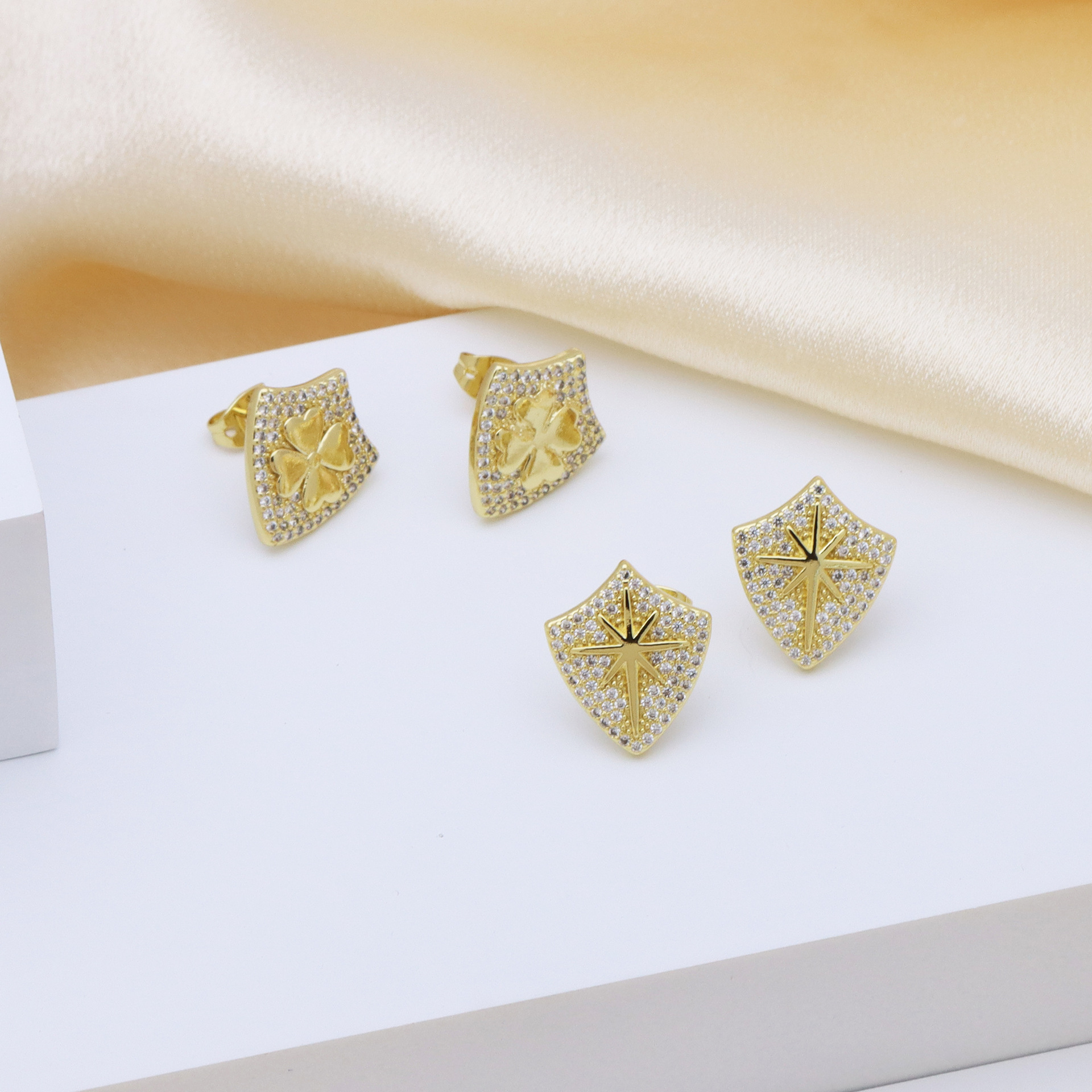 Boucles d'oreilles en laiton zircon cubique pavent, Épingles de Kilt, Placage de couleur d'or, bijoux de mode & pavé de micro zircon & pour femme, doré Vendu par paire