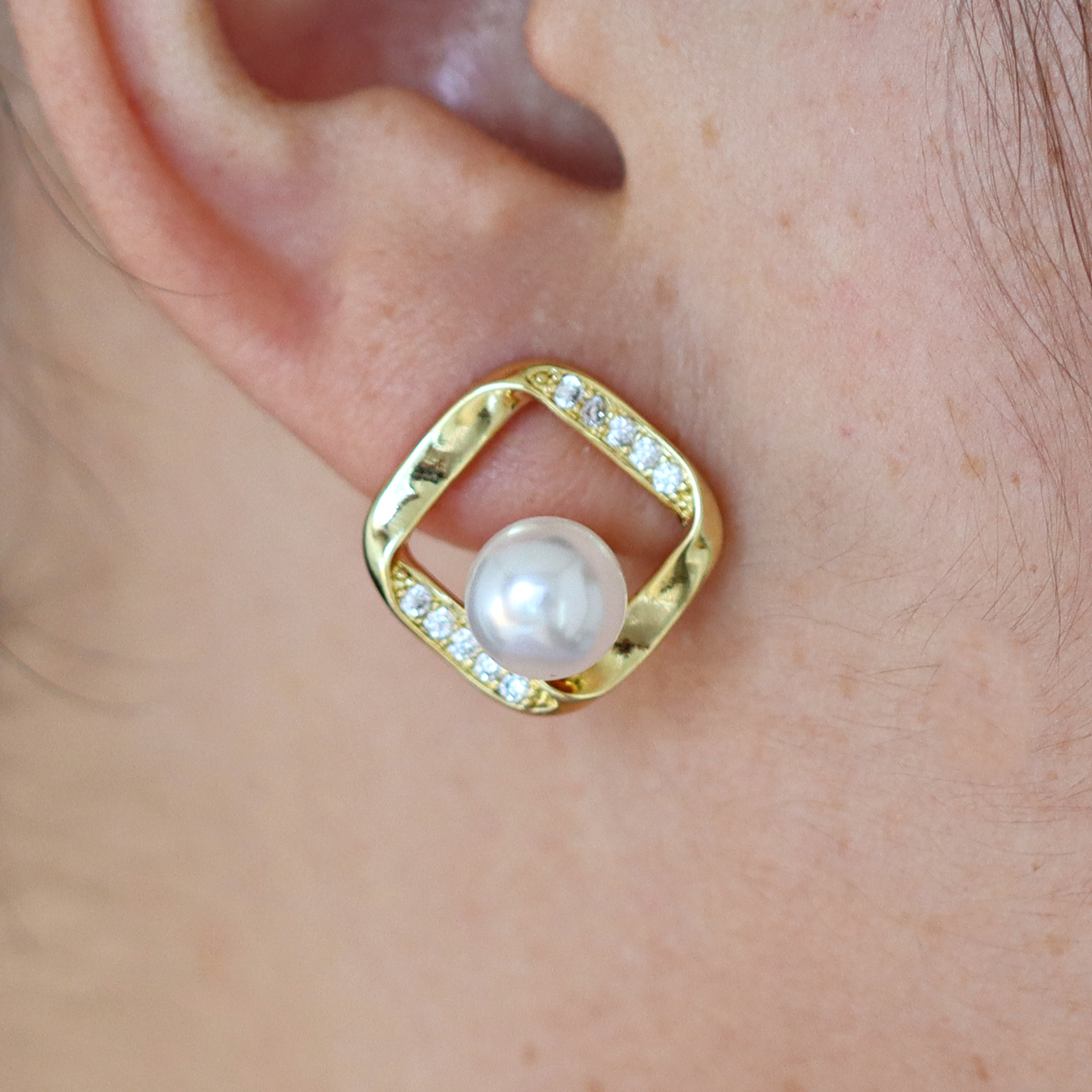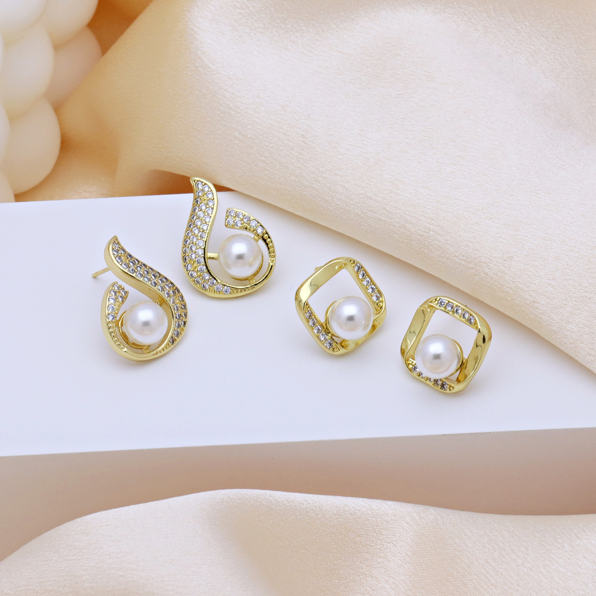 Boucles d'oreilles en laiton zircon cubique pavent, avec perle de plastique, Placage de couleur d'or, styles différents pour le choix & pavé de micro zircon & pour femme, plus de couleurs à choisir, Vendu par paire