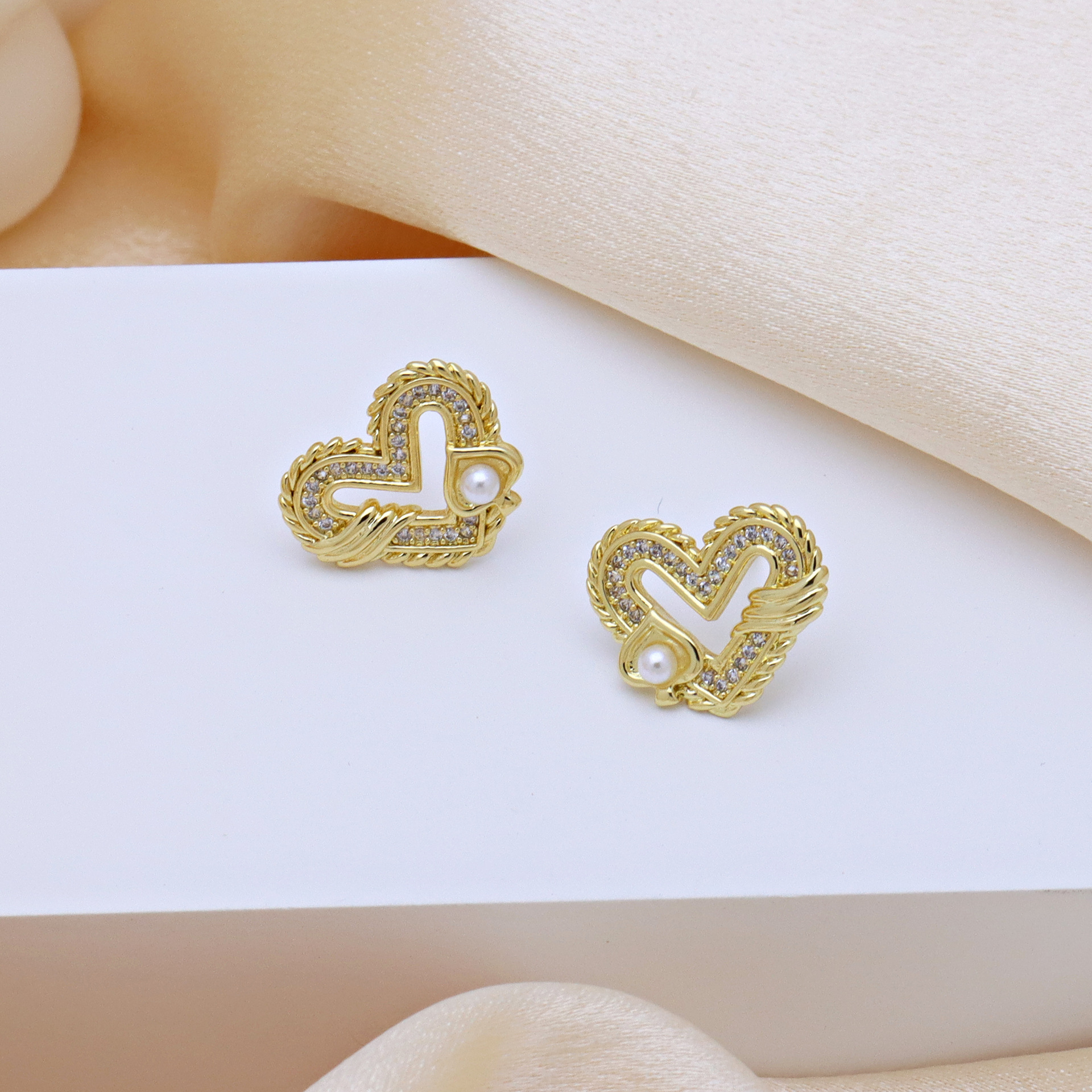 Boucles d'oreilles en laiton zircon cubique pavent, Placage, pavé de micro zircon & pour femme & creux, Vendu par paire