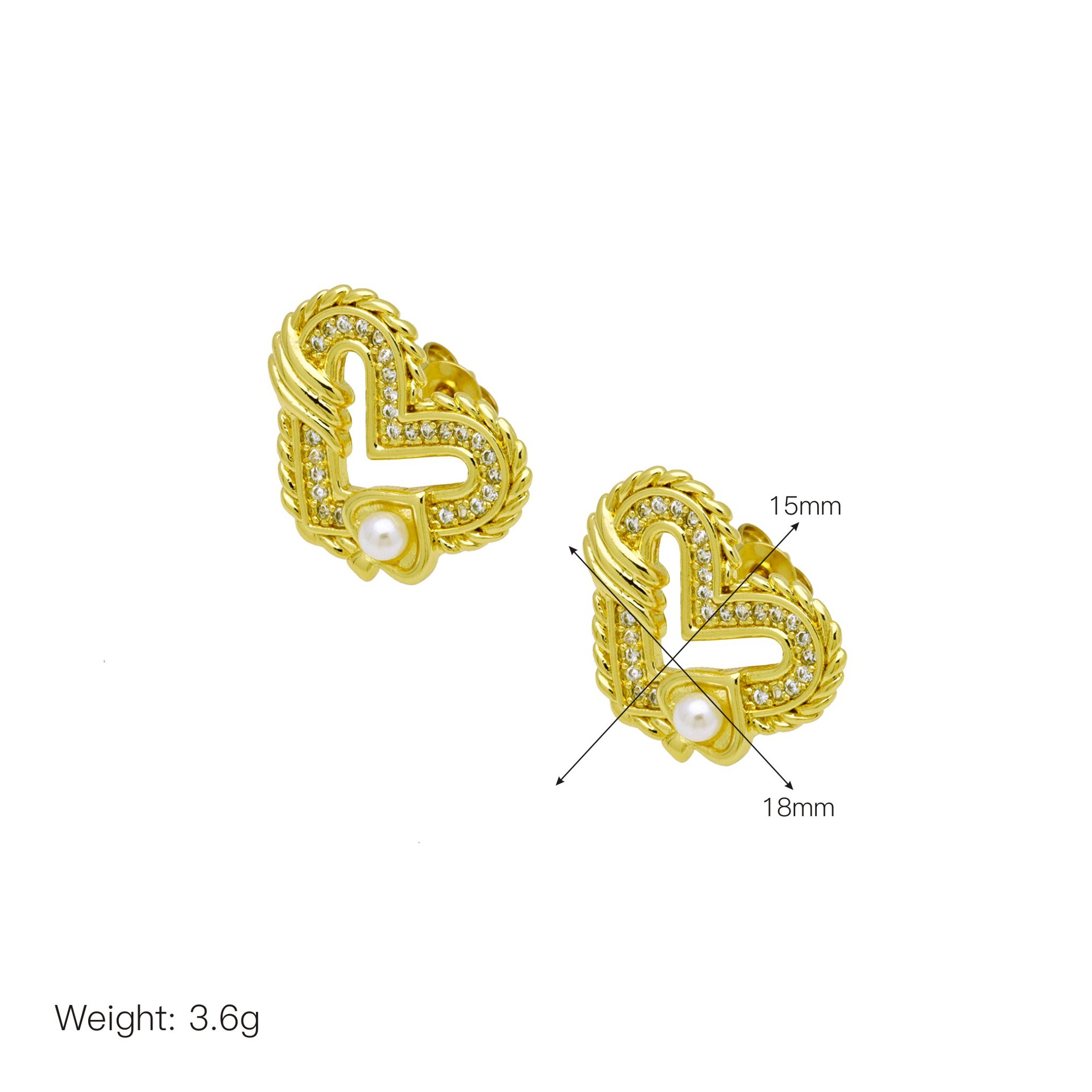 Boucles d'oreilles en laiton zircon cubique pavent, Épingles de Kilt, Placage de couleur d'or, bijoux de mode & pavé de micro zircon & pour femme, doré Vendu par paire