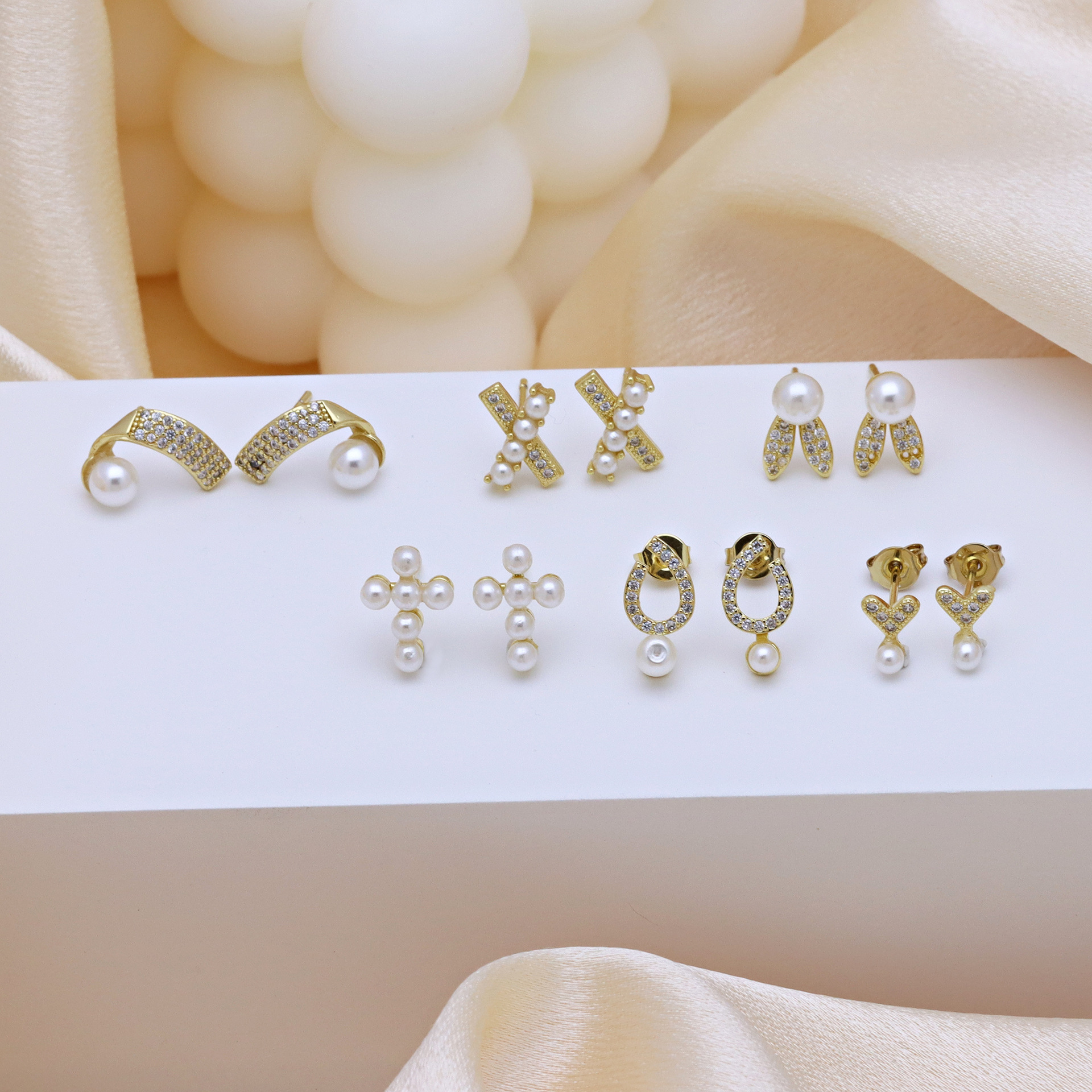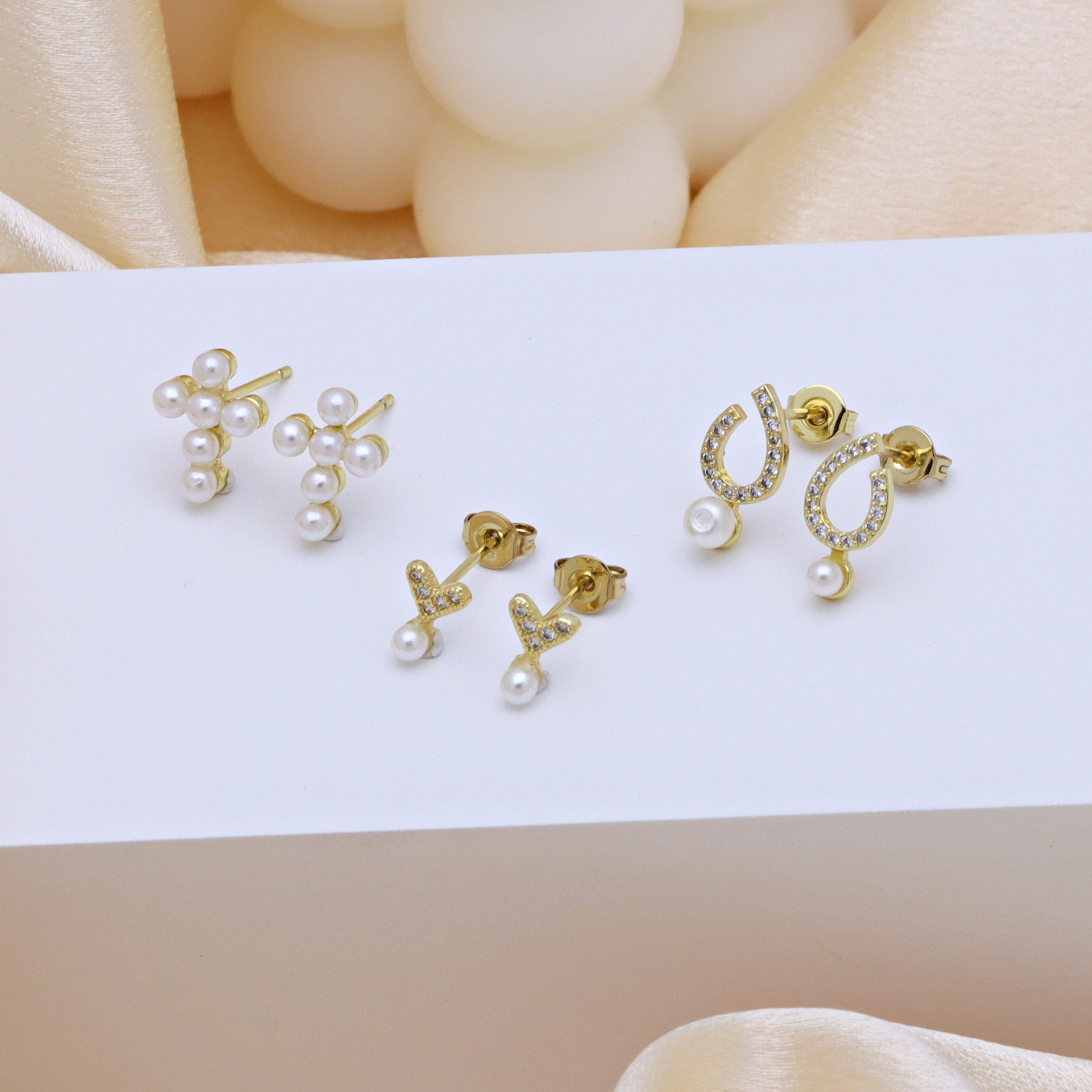 Boucles d'oreilles en laiton zircon cubique pavent, avec perle de plastique, Placage de couleur d'or, styles différents pour le choix & pavé de micro zircon & pour femme, plus de couleurs à choisir, Vendu par paire