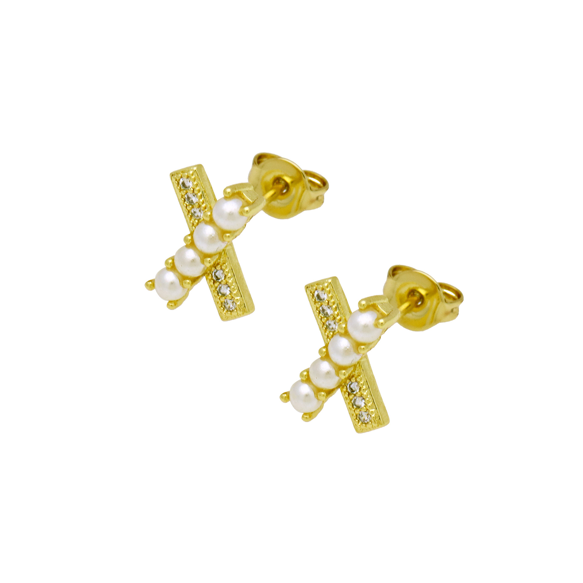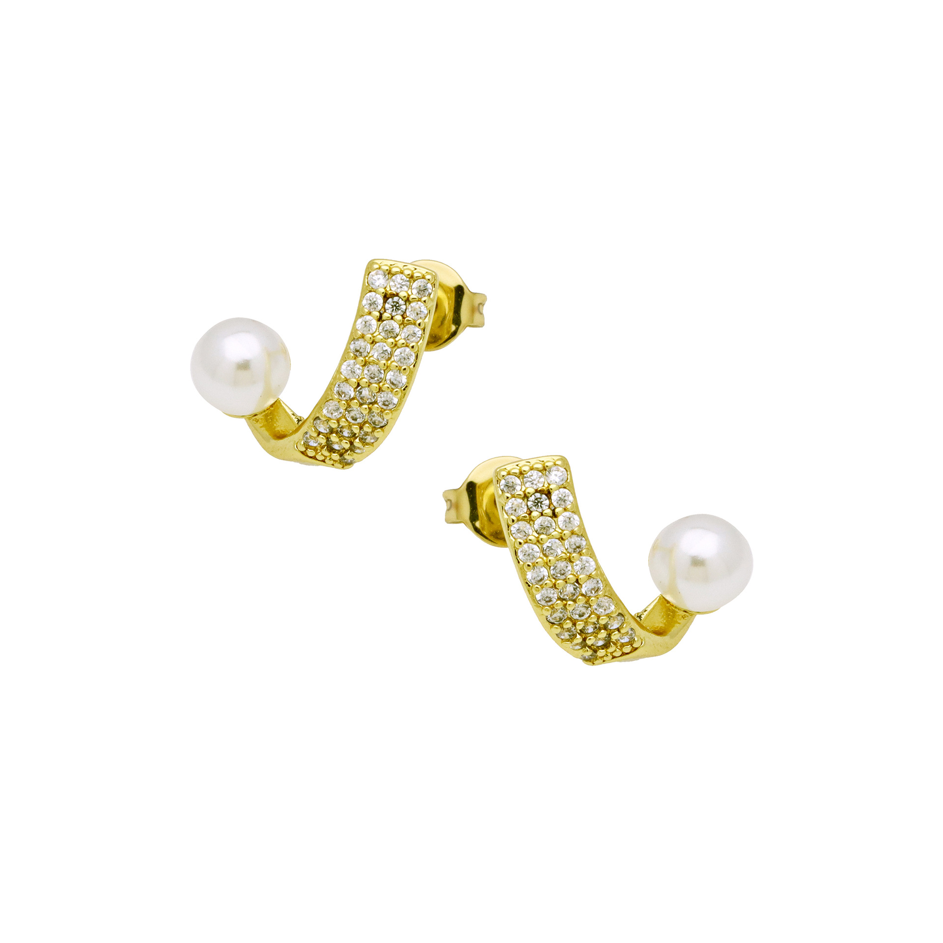 Boucles d'oreilles en laiton zircon cubique pavent, Épingles de Kilt, Placage de couleur d'or, bijoux de mode & pavé de micro zircon & pour femme, doré Vendu par paire