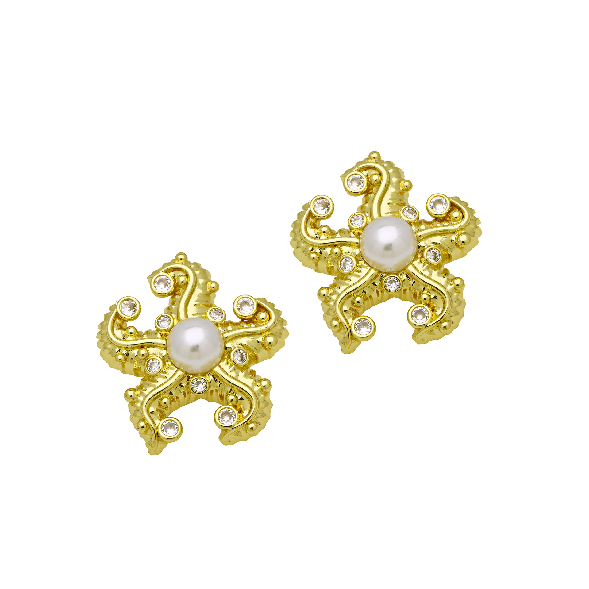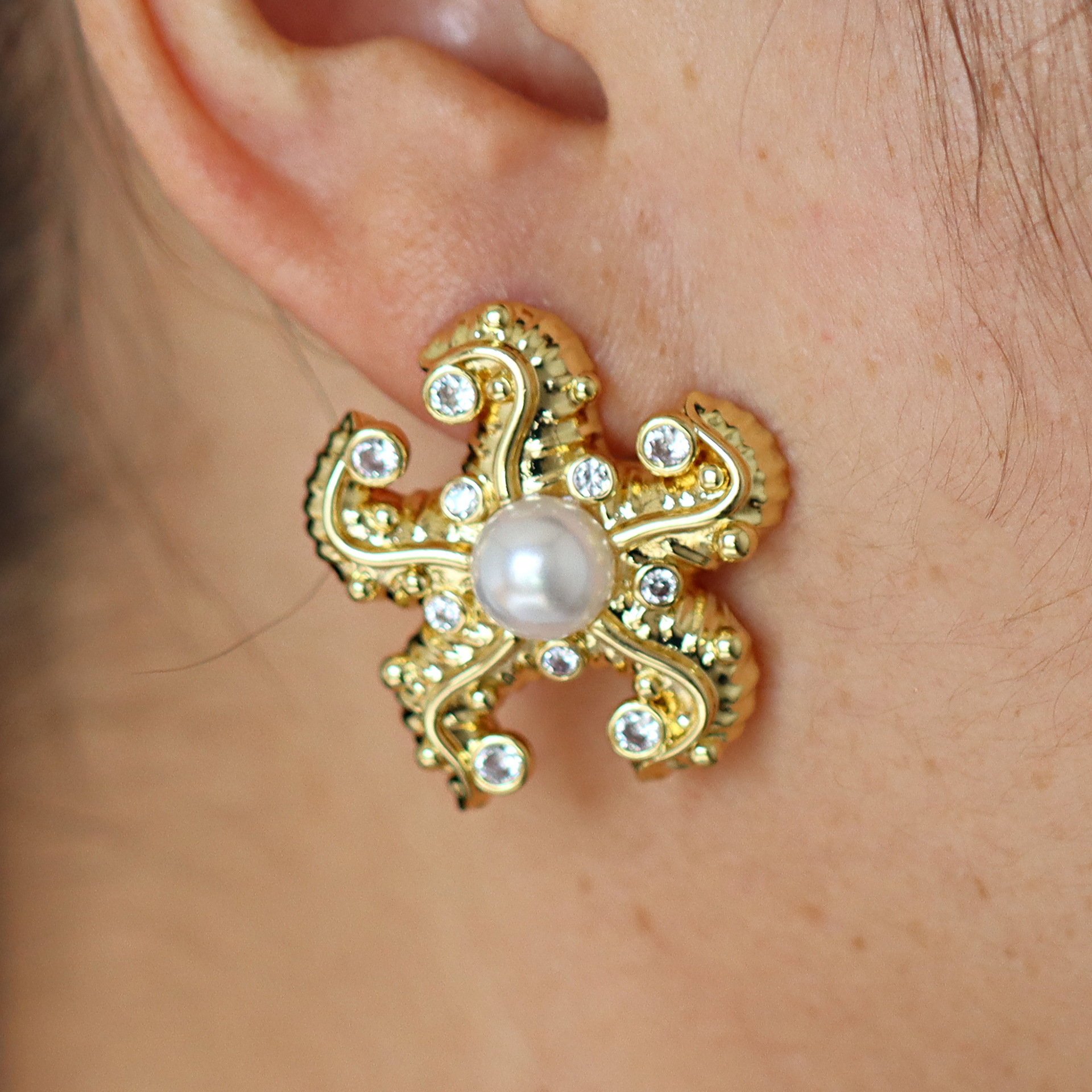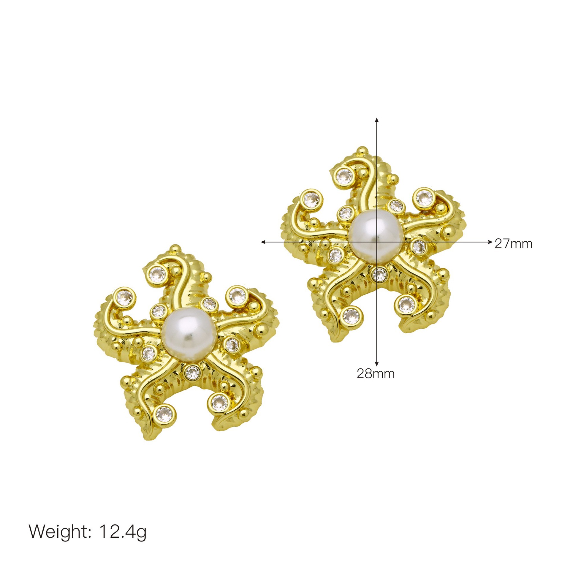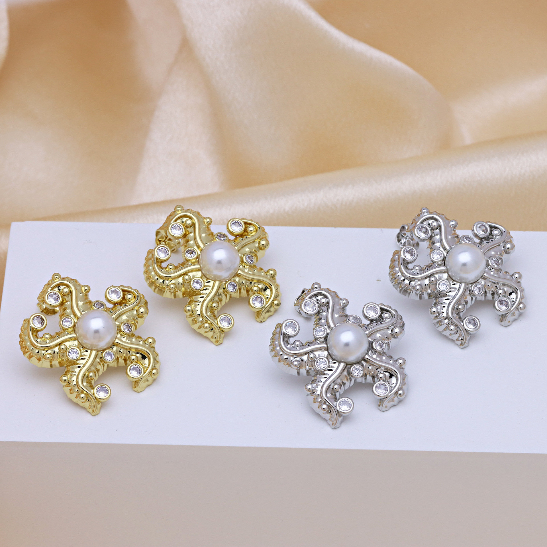 Boucles d'oreilles en laiton zircon cubique pavent, avec Huître perlière, Trèfle à quatre feuilles, Plaqué d'or, bijoux de mode & pavé de micro zircon & pour femme, Vendu par paire