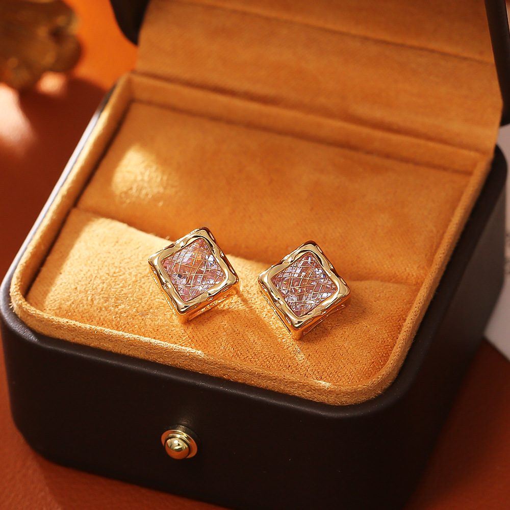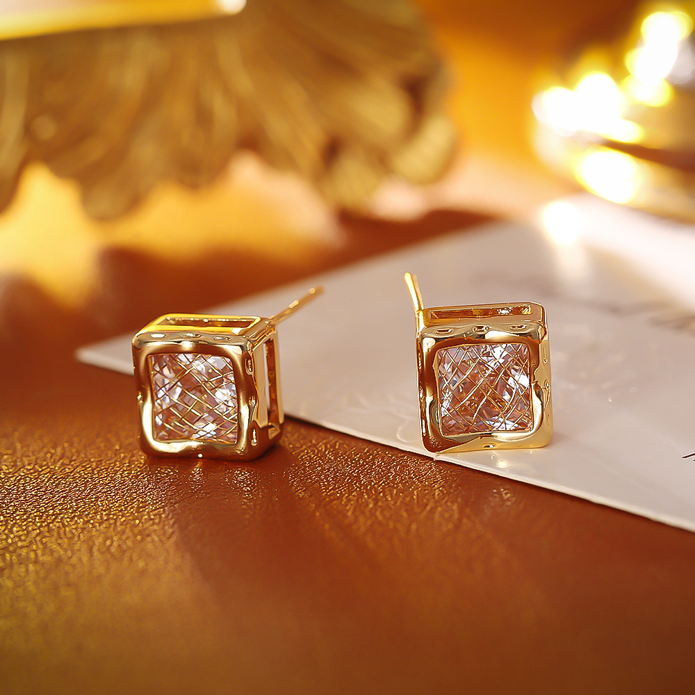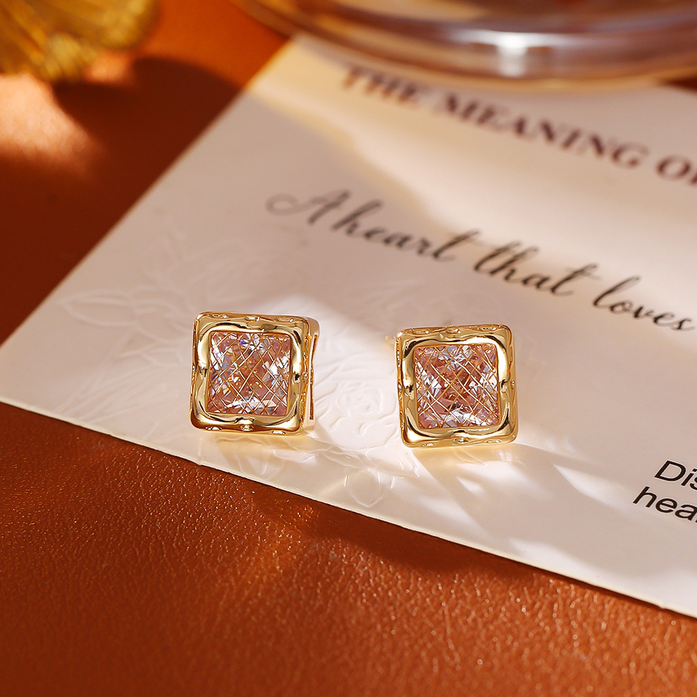 Boucles d'oreilles en laiton zircon cubique, avec zircon cubique, cadre, Plaqué d'or, bijoux de mode & pour femme, Vendu par paire