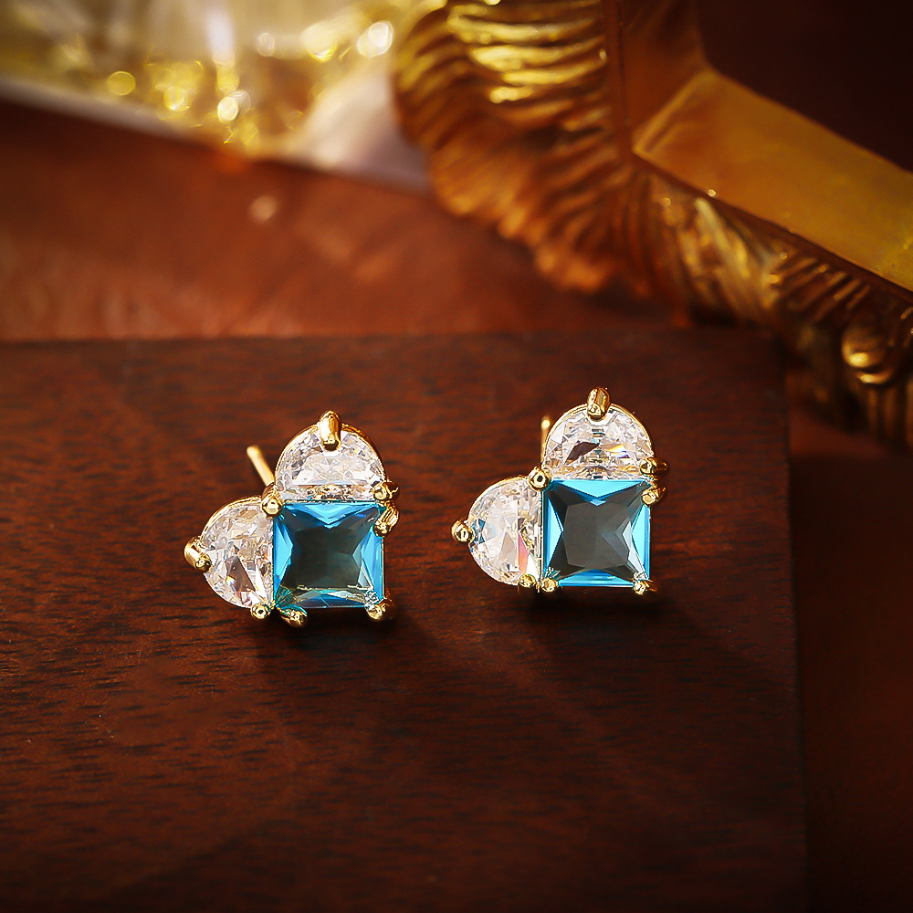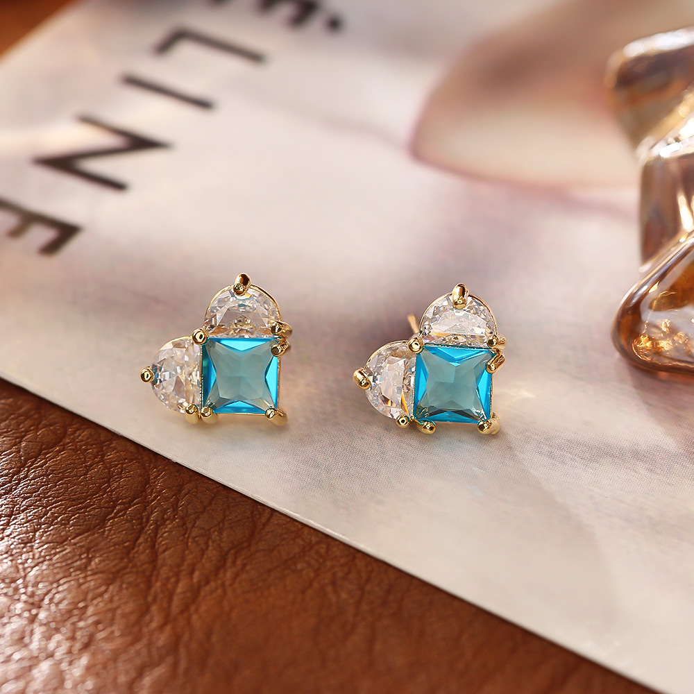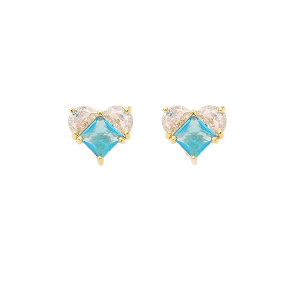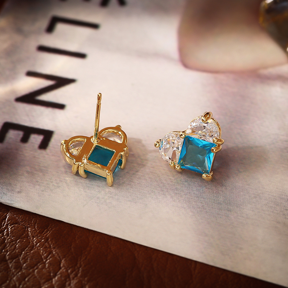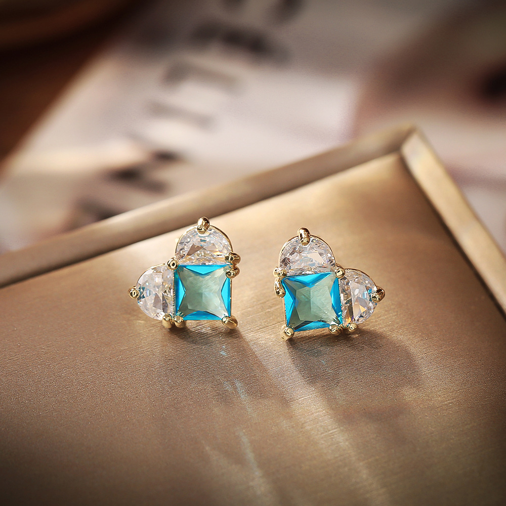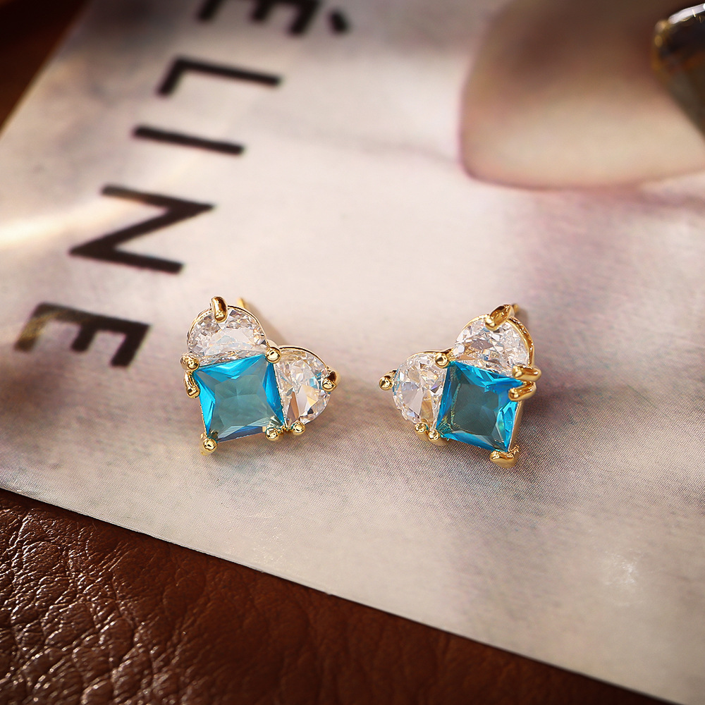 Boucles d'oreilles en laiton zircon cubique, avec zircon cubique, coeur, Plaqué d'or, bijoux de mode & pour femme, Vendu par paire