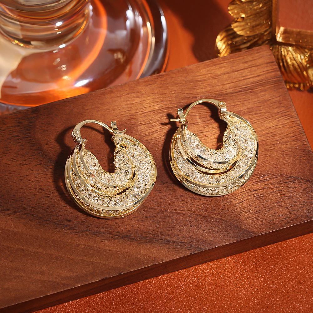 Boucles d'oreilles en laiton zircon cubique, avec zircon cubique, Plaqué d'or, bijoux de mode & pour femme, Vendu par paire
