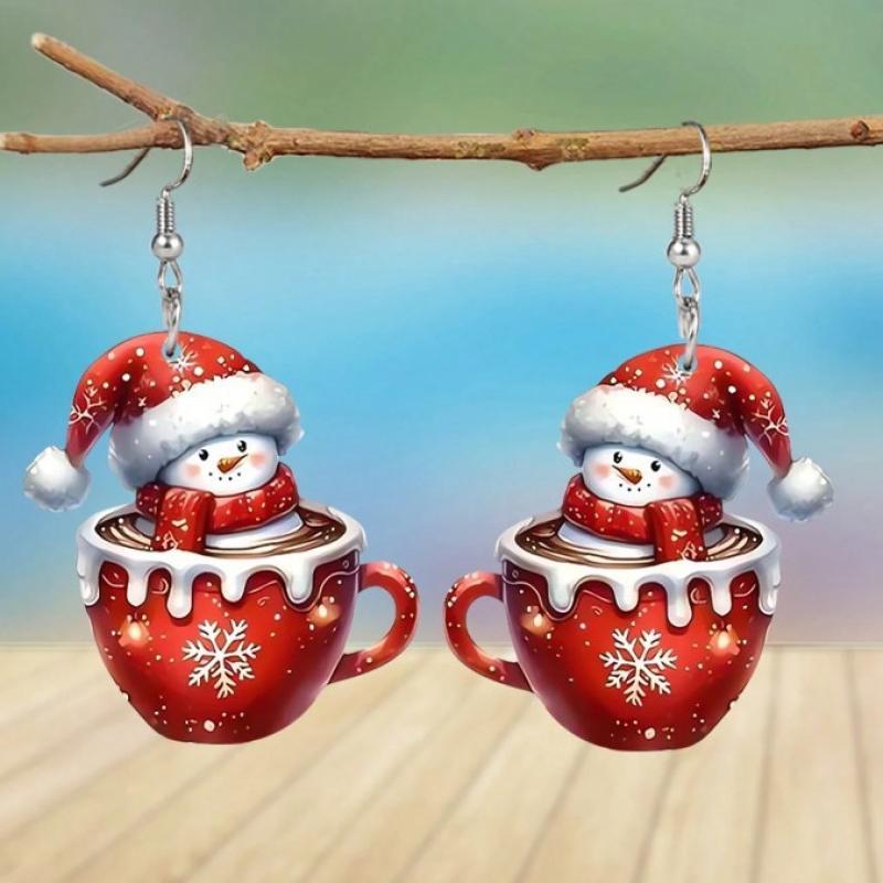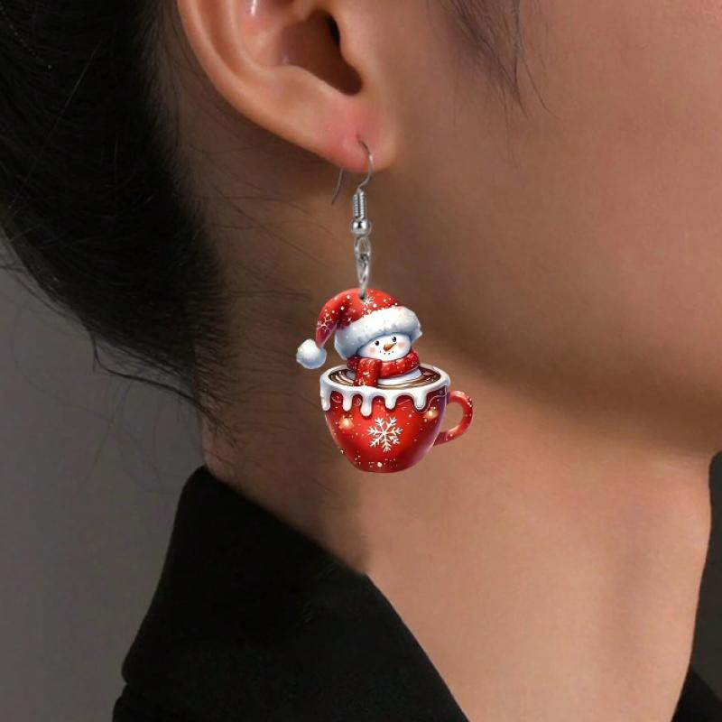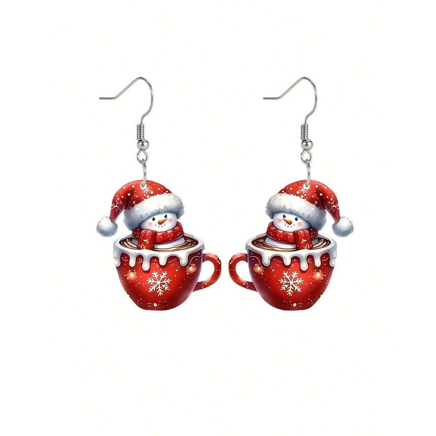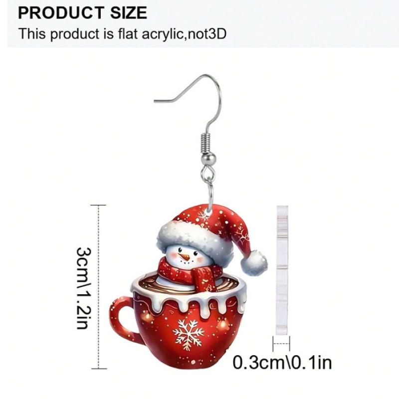 Boucles d'oreilles de Noël, alliage de zinc, avec Acrylique, bonhomme de neige, Impression, Impression 3D & Conception de Noël & pour femme, rouge, 55x30mm, Vendu par paire
