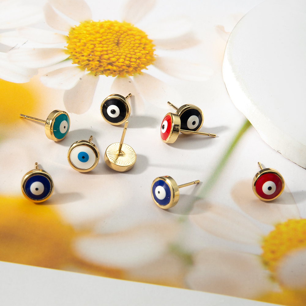 Boucles d'oreilles de mauvais œil, laiton, avec earnut de caoutchouc & résine, Placage, pavé de micro zircon & pour femme, plus de couleurs à choisir Vendu par paire