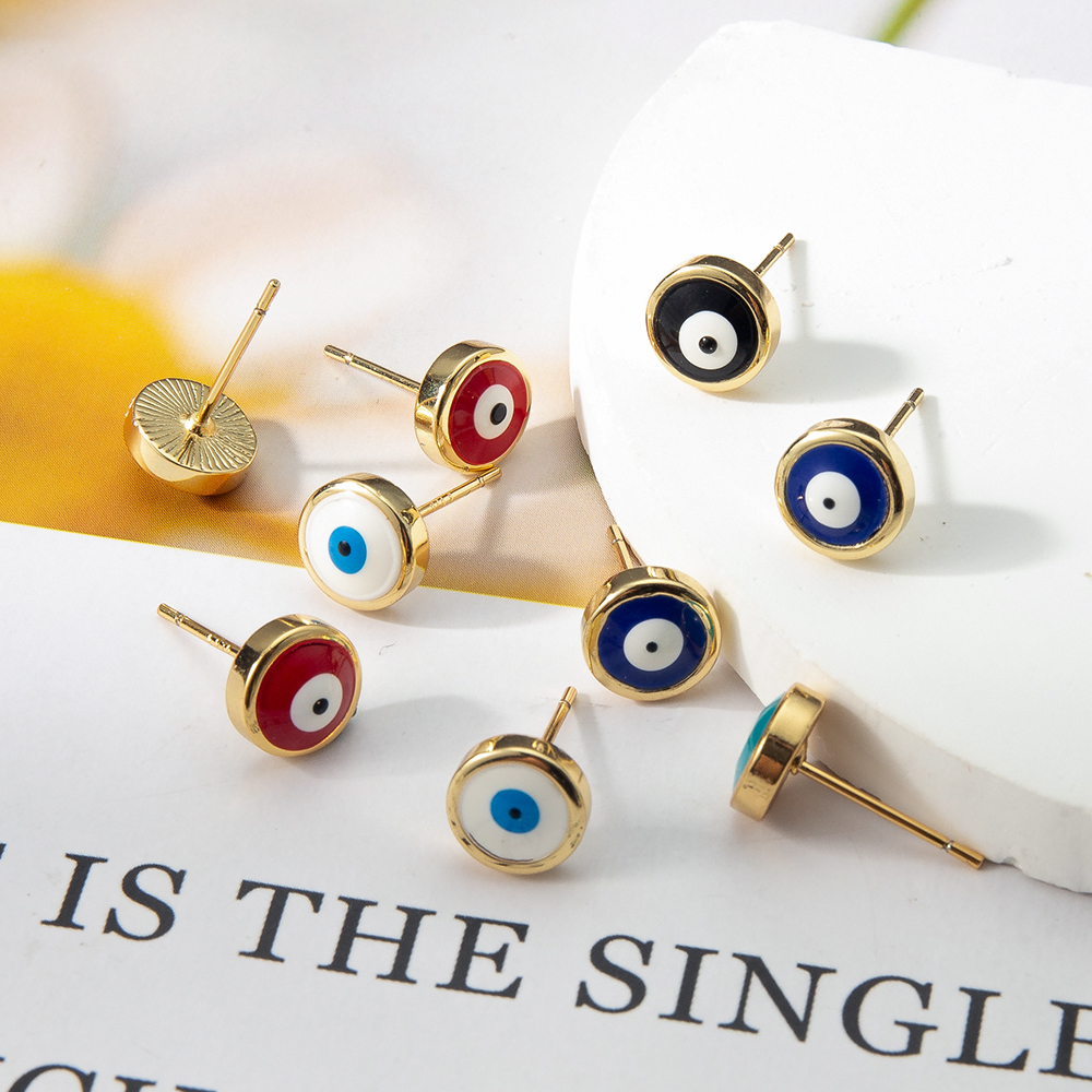 Boucles d'oreilles de mauvais œil, laiton, Placage, bijoux de mode & émail, plus de couleurs à choisir, protéger l'environnement, sans nickel, plomb et cadmium, 8x15.2x16.5mm, Vendu par paire