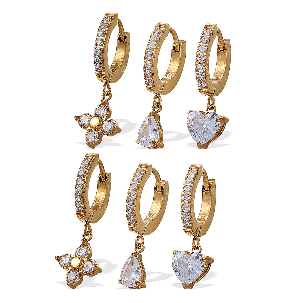 Boucles d'oreilles en acier titane, Placage de couleur d'or, bijoux de mode & styles différents pour le choix & pavé de micro zircon, doré, Vendu par paire