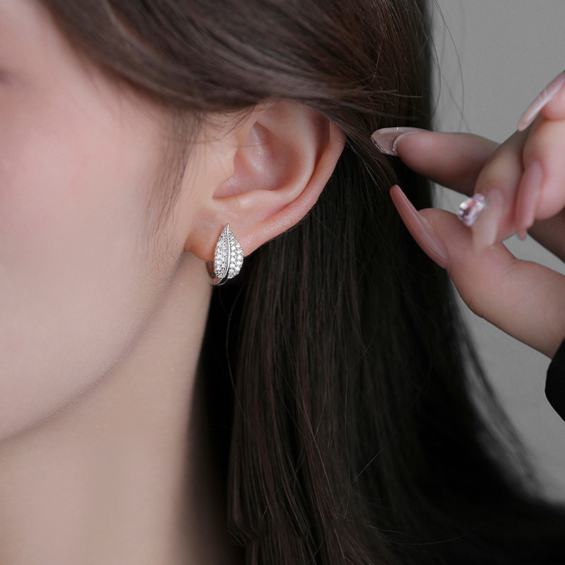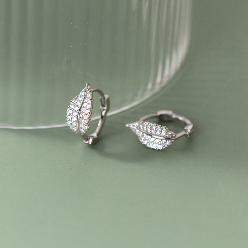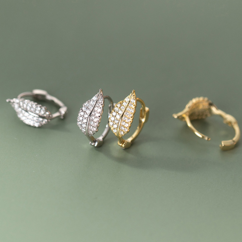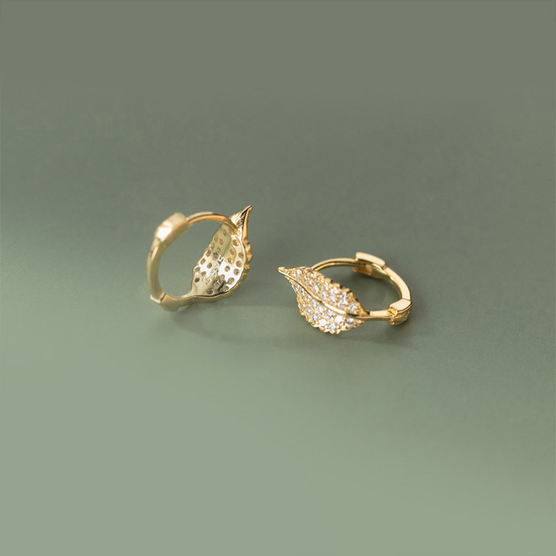 Boucles d'oreilles en laiton zircon cubique pavent, feuille, Placage, pavé de micro zircon & pour femme, plus de couleurs à choisir, Leaves 11*6MM, inner diameter 10MM, Vendu par paire