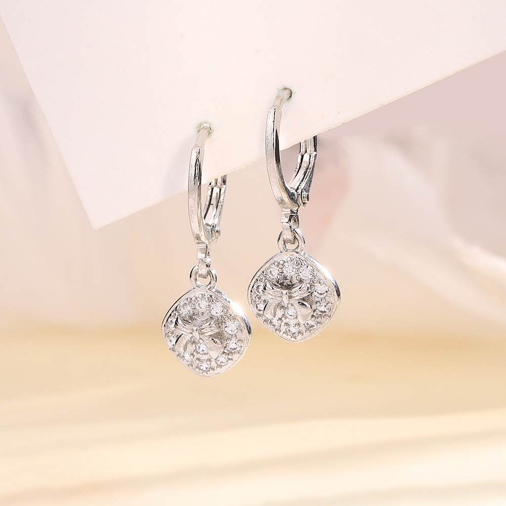 Boucles d'oreilles en laiton zircon cubique pavent, Plaqué de couleur d'or rose, pavé de micro zircon Vendu par paire