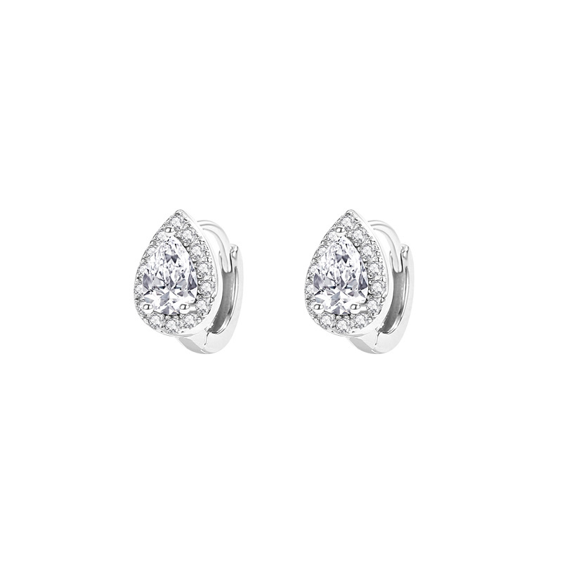 Boucles d'oreilles en laiton zircon cubique pavent, Placage, pavé de micro zircon & pour femme, couleur platine, 7x11mm, Vendu par paire